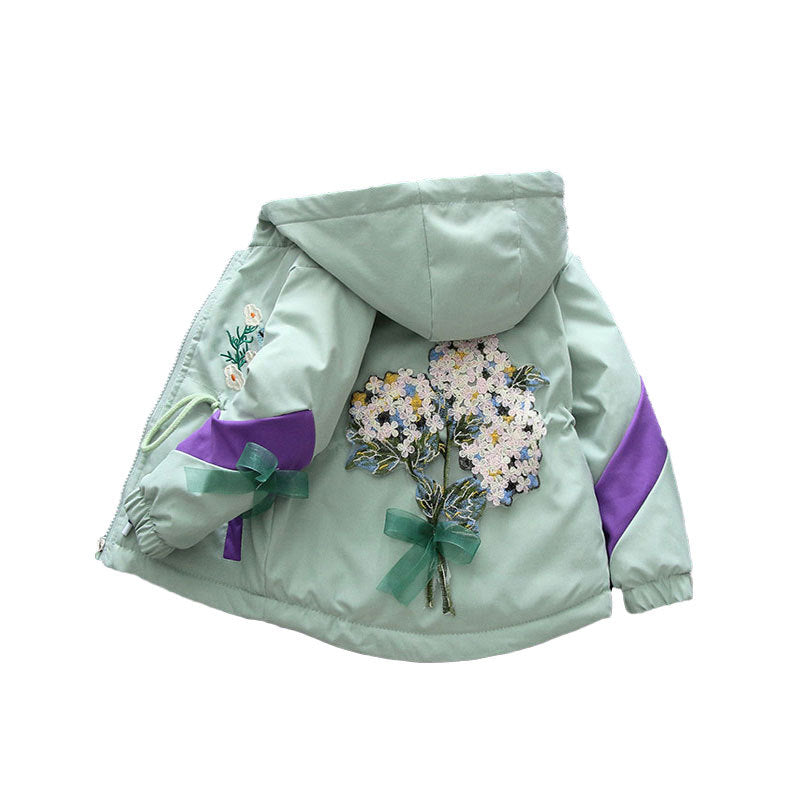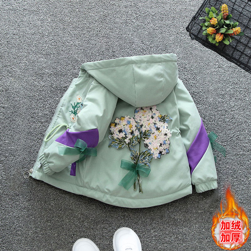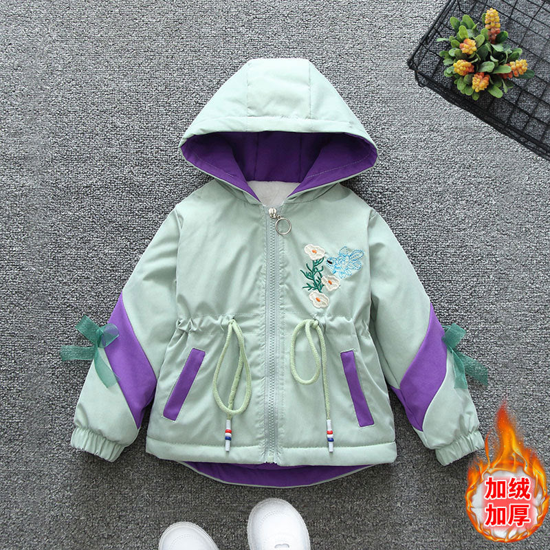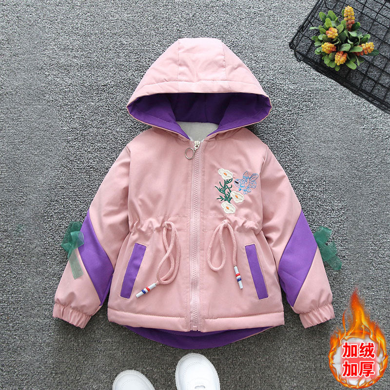 2025 autumn and winter children's warm thickened velvet cute girls waist jacket medium and older children's trench coat hooded jacket