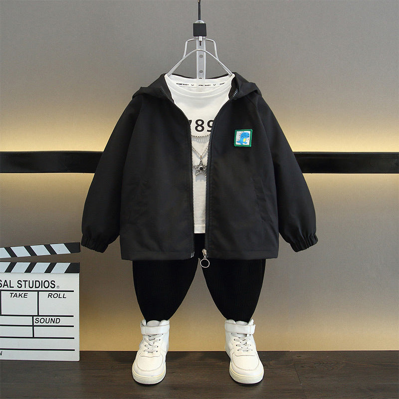 2025 children's clothing coat new boys and girls hooded zipper shirt jacket medium and children's spring top