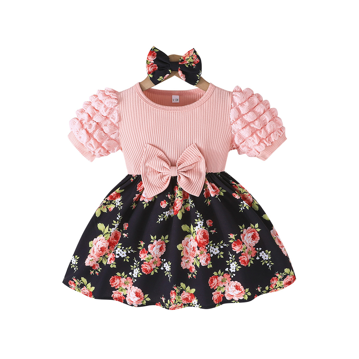 2025 sweet beautiful woman baby lady bow decorative flower dress + headscarf European and American cross-border summer new models
