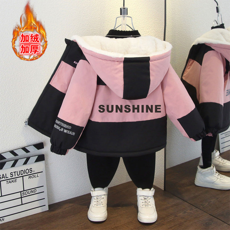 2025 winter girls velvet cotton-padded thickened warm hooded jacket