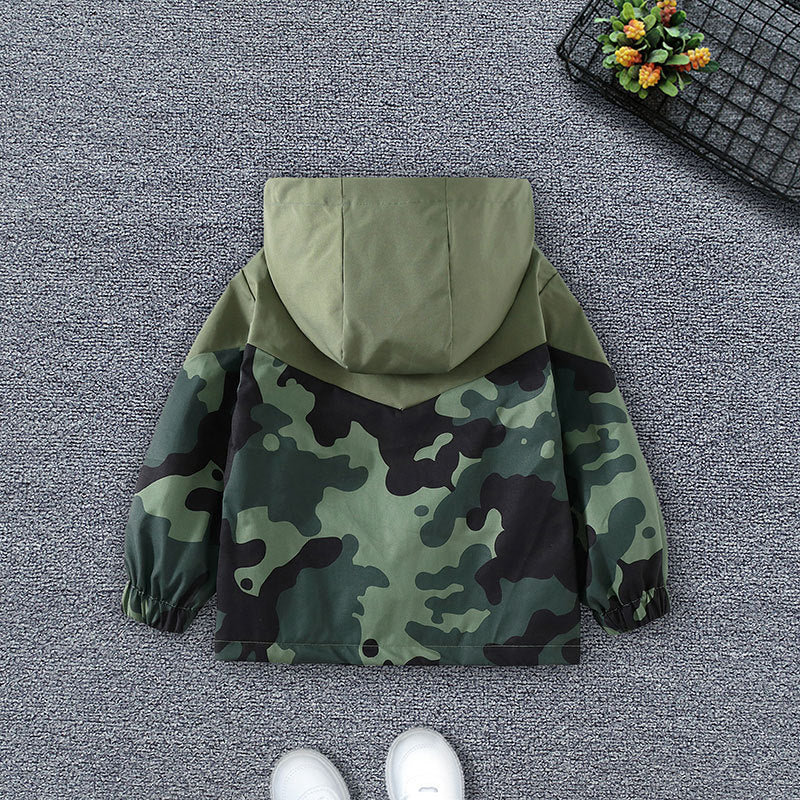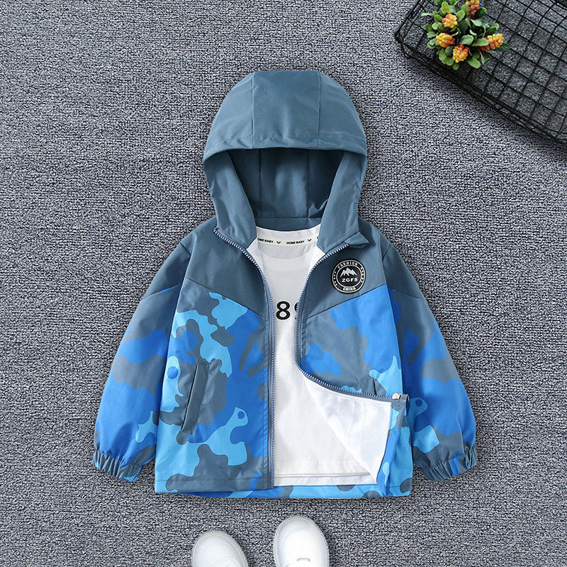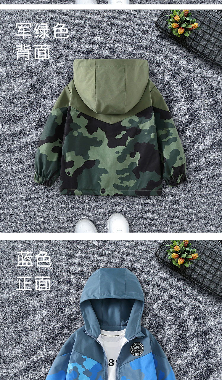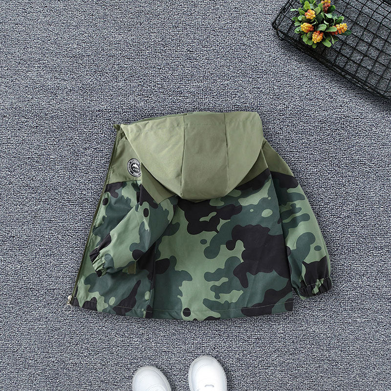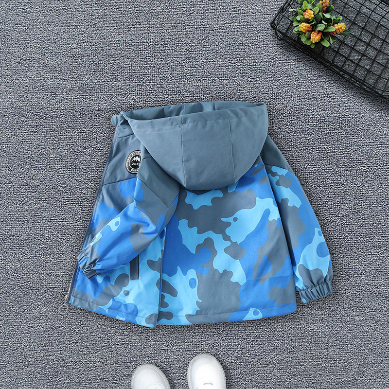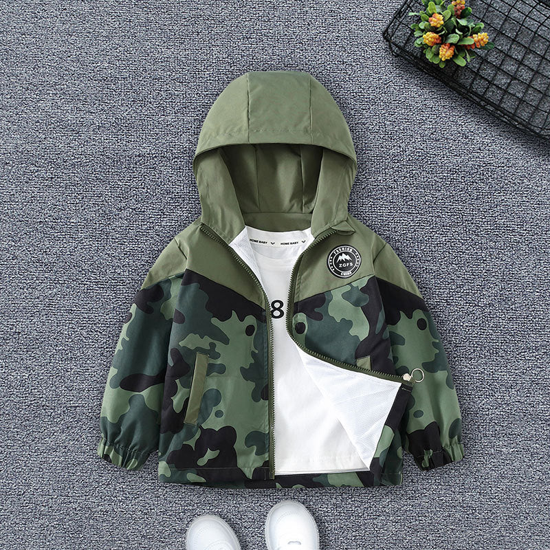 Boys 2025 autumn children's clothing on the new medium and large children's baby boy Korean version of cool handsome long-sleeved jacket camouflage hooded jacket