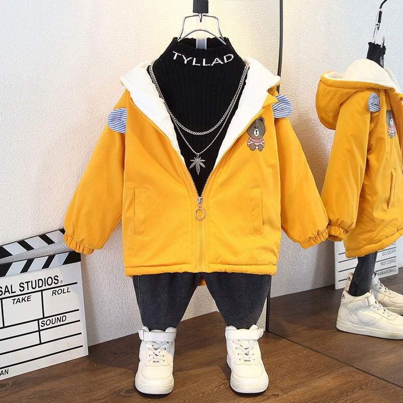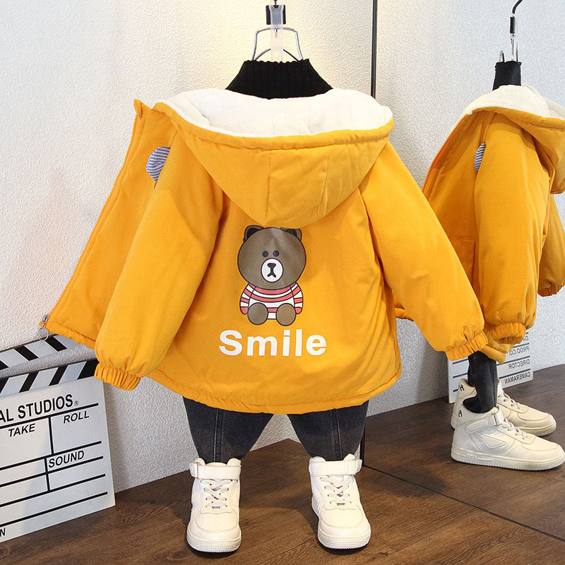 Color: bear print fleece jacket red, bear print fleece jacket yellow