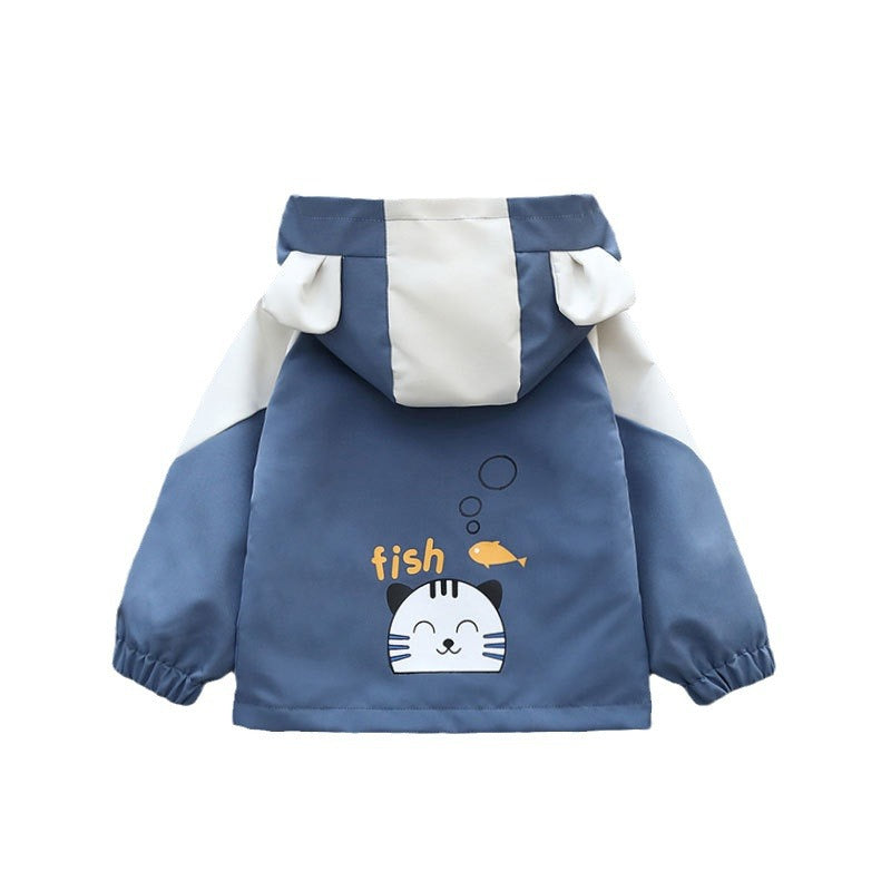 Boys cartoon jacket autumn wear 2025 new children's trench coat small and medium girls hooded casual spring and autumn wear