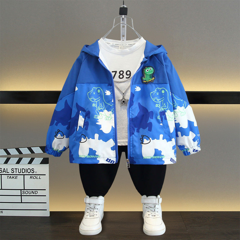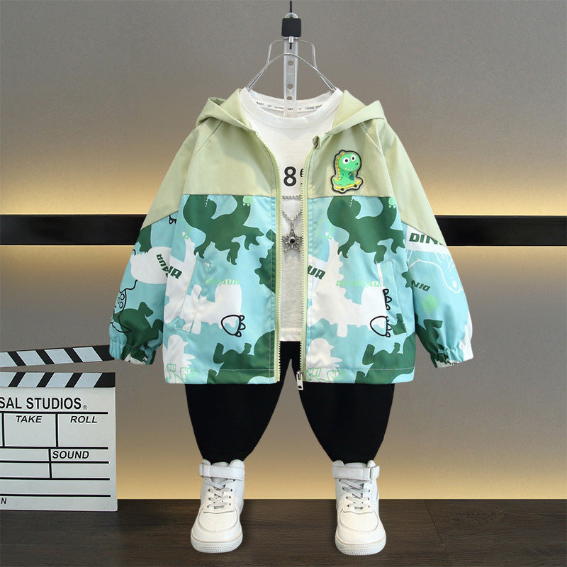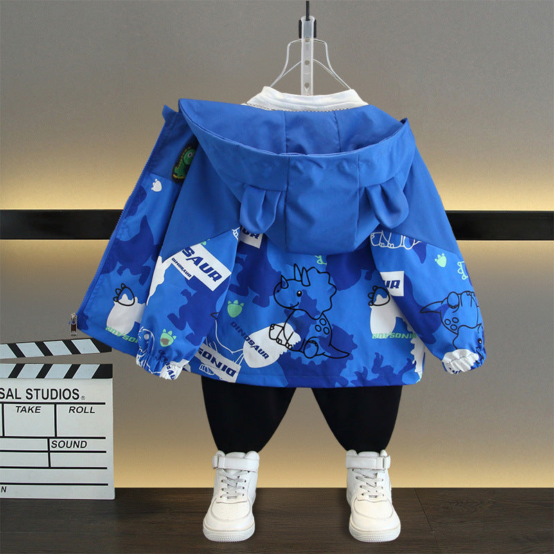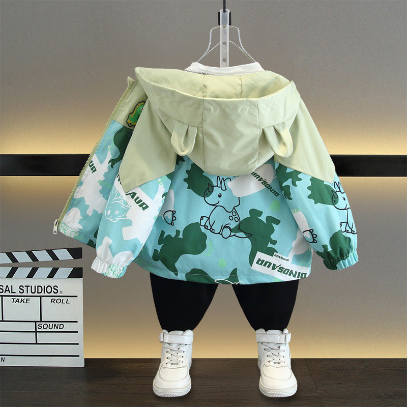 Boys' coat spring 2025 children's clothing hooded jacket top men's and women's treasure thin jacket trendy