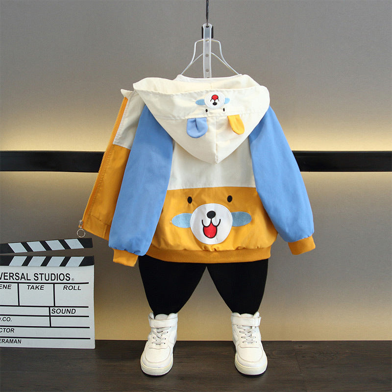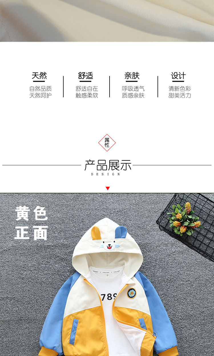 Boys' coat spring and autumn 2025 new autumn clothing children's color matching trench coat girls' baby autumn hooded top