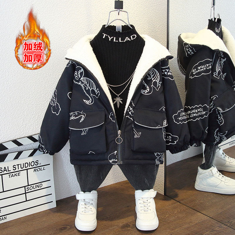 Boys’ Fleece Baseball Jacket – 2025 Autumn & Winter Thickened Cotton Padded Coat