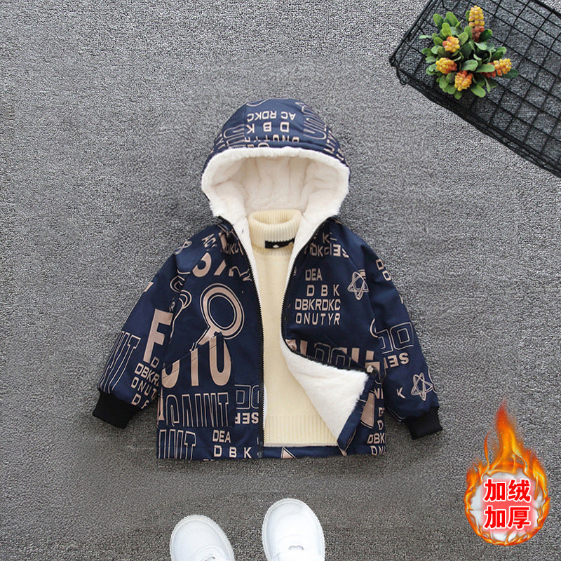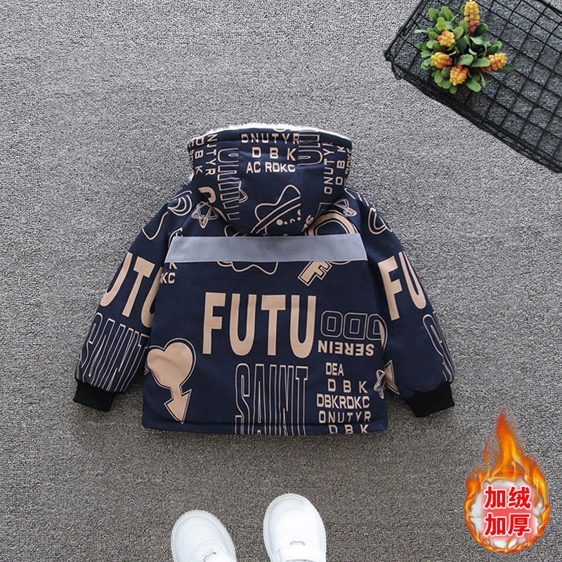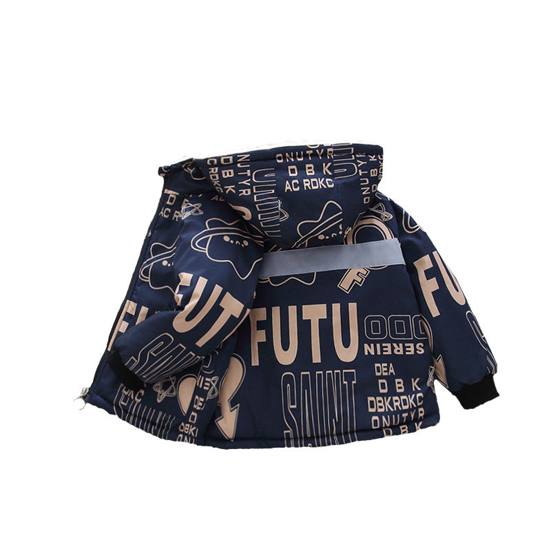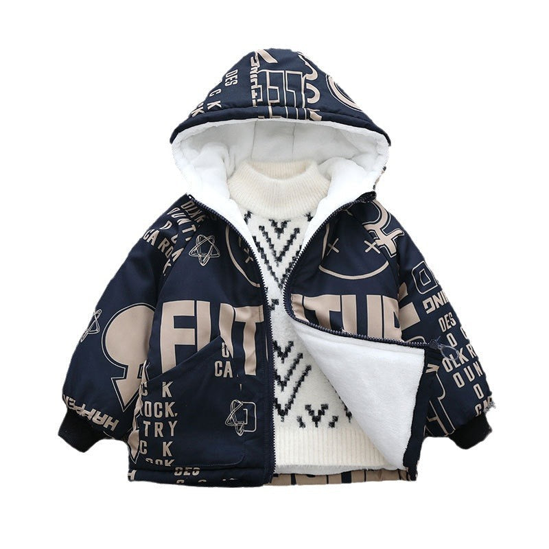 Boys' fleece thickened jacket autumn and winter 2025 new children's winter padded cotton-padded clothes medium and older children's cotton clothes are damp and cold-proof