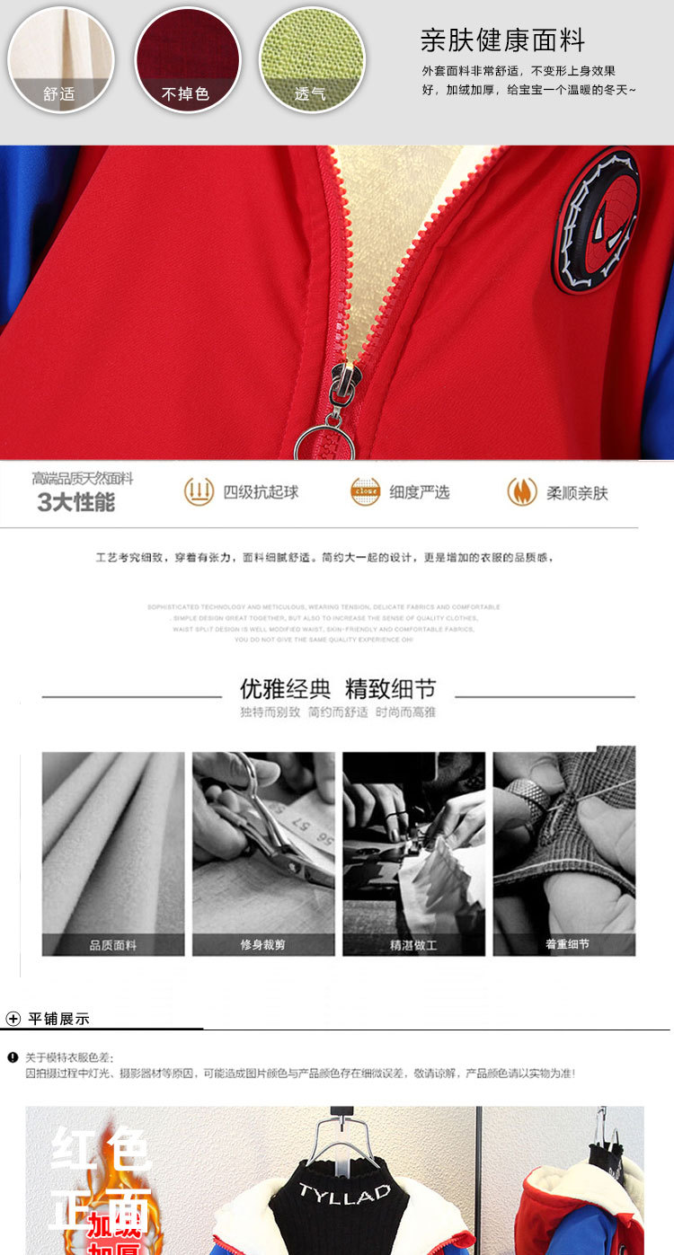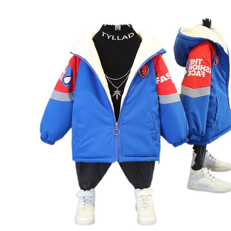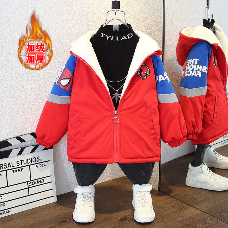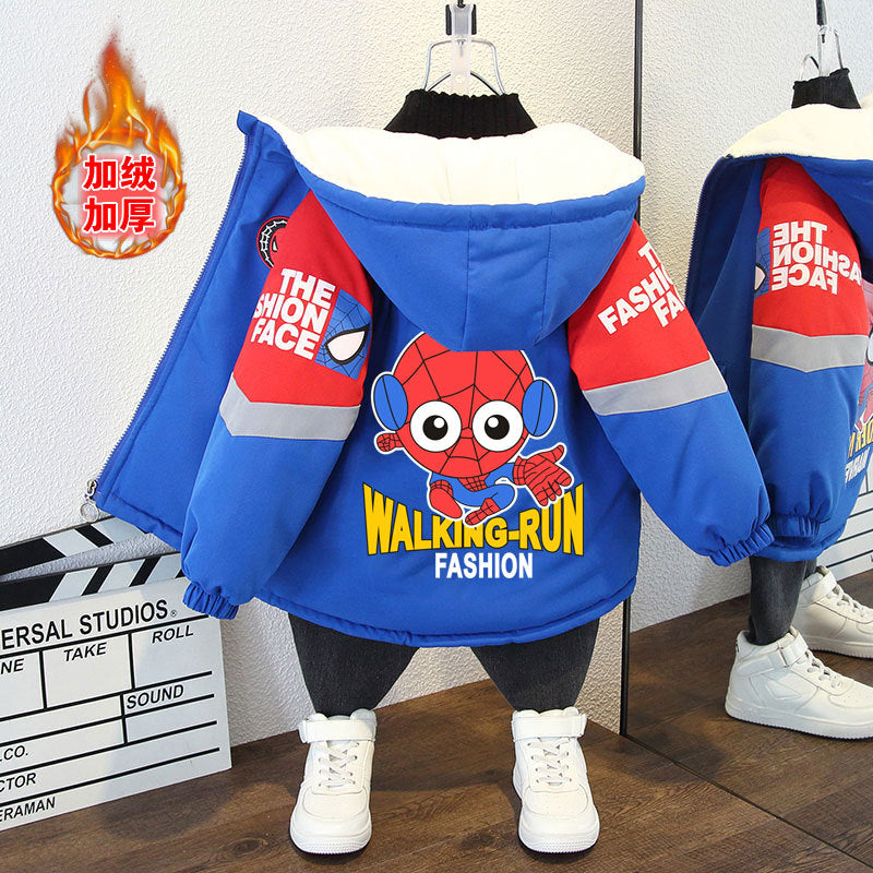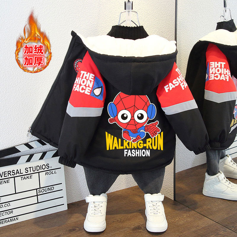 Boys' jacket autumn and winter 2025 new hooded clothing winter fashionable older children's fleece thickened hooded cartoon