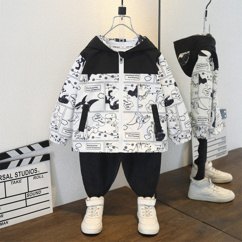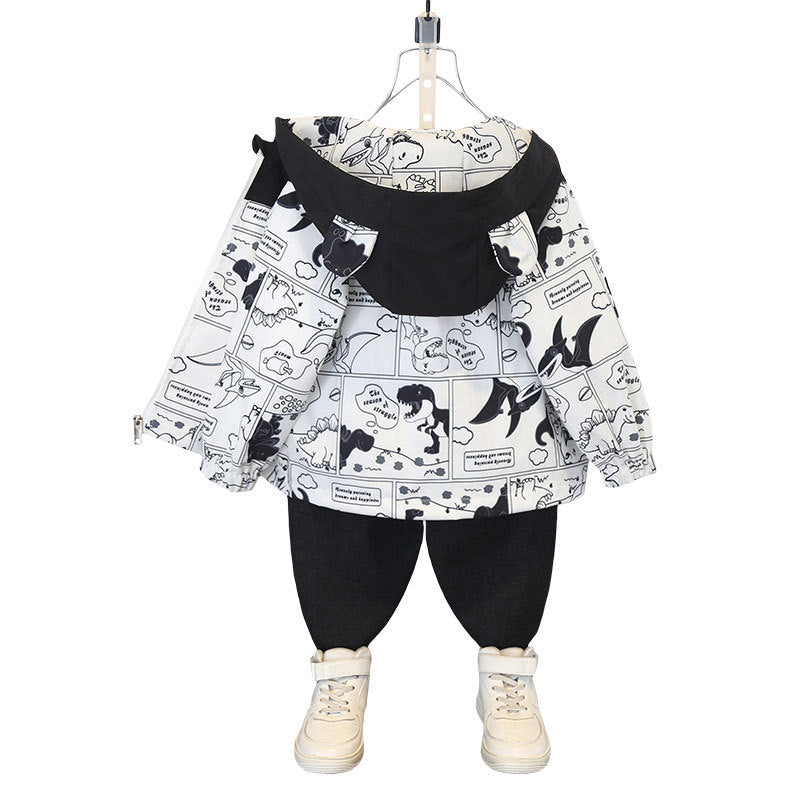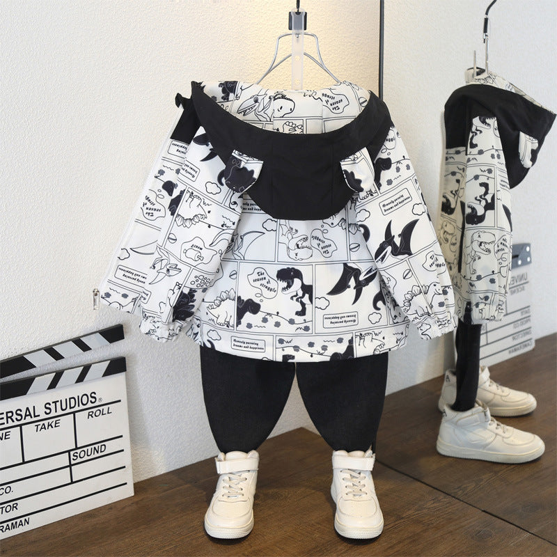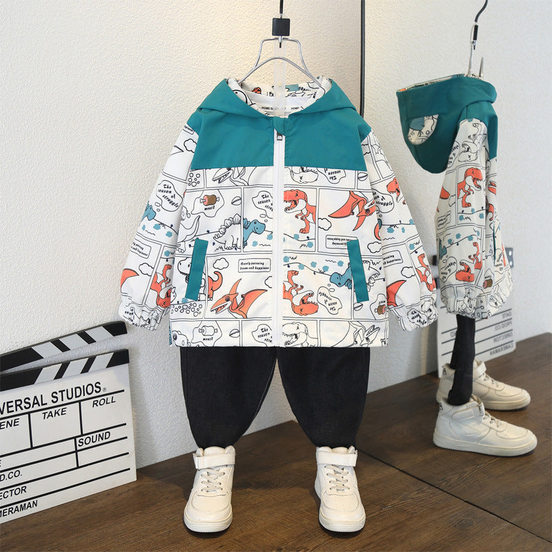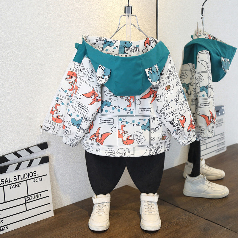 2025 Boys’ Spring/Autumn Jacket – Kids’ Cartoon Dinosaur Hooded Trench Coat, Lightweight Children’s Outerwear