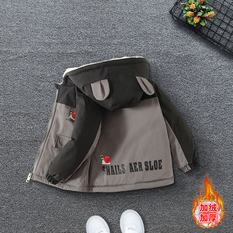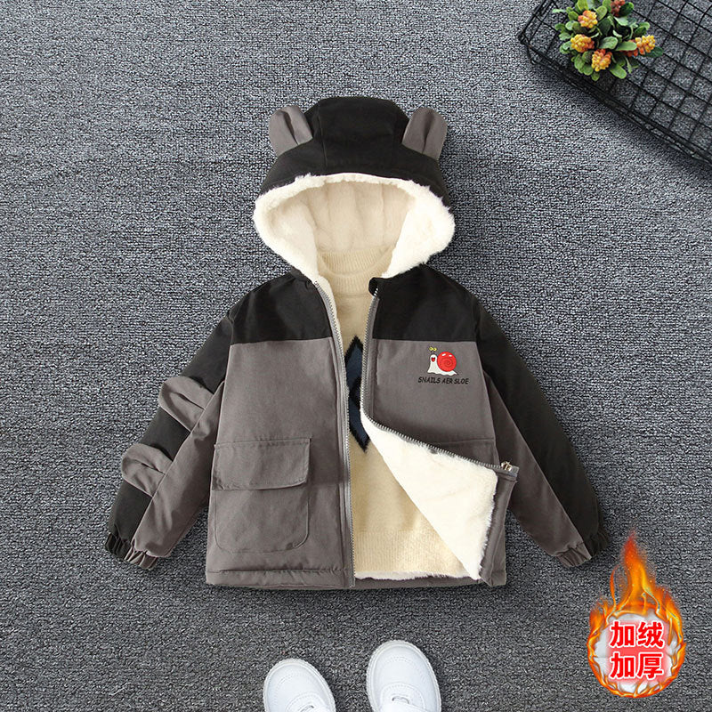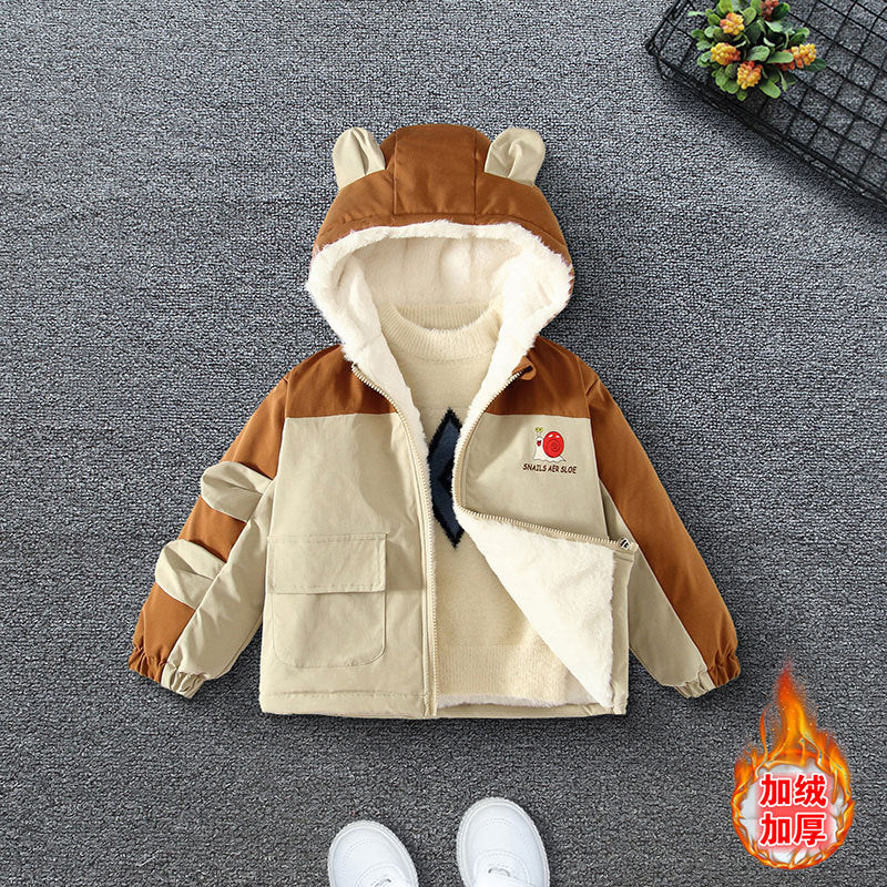Boys' winter thickened cotton-padded jacket 2025 new children's clothing autumn and winter boys' velvet jacket wholesale trend