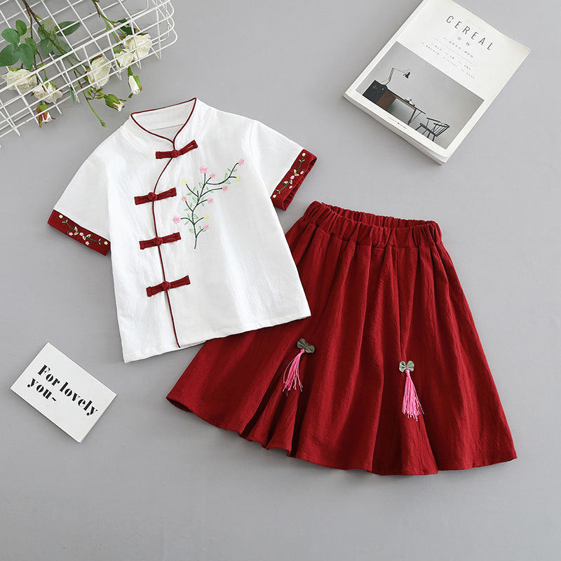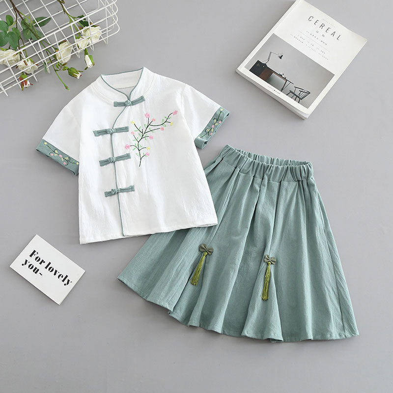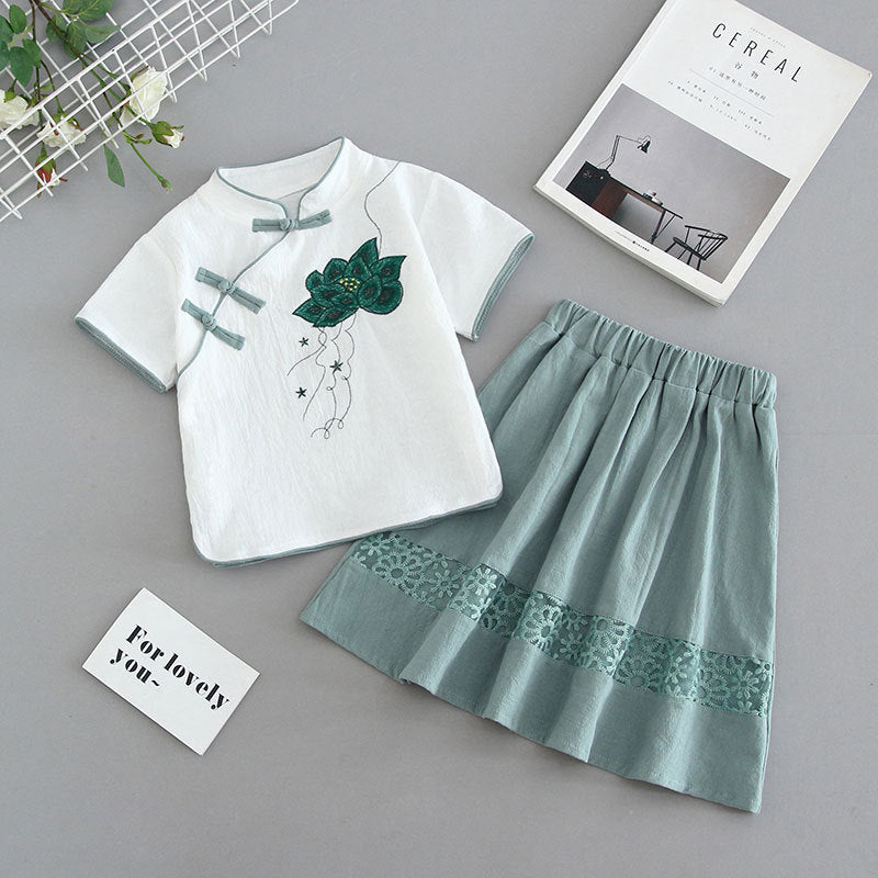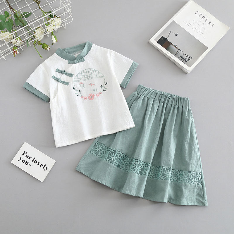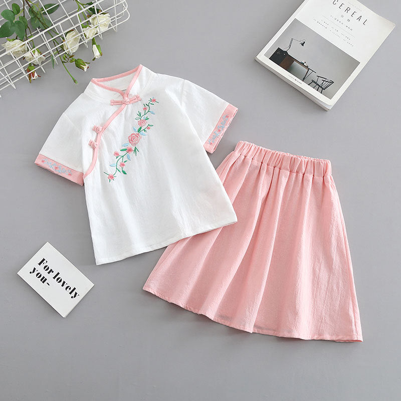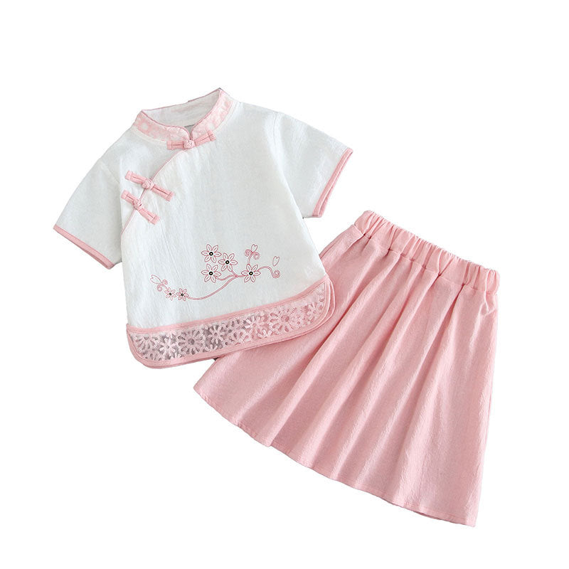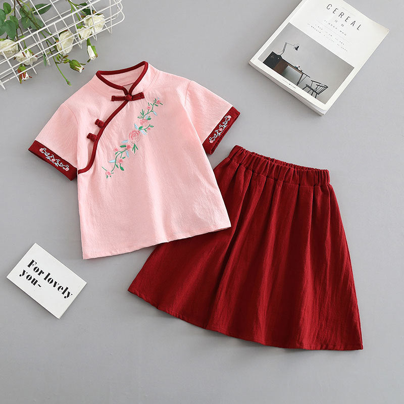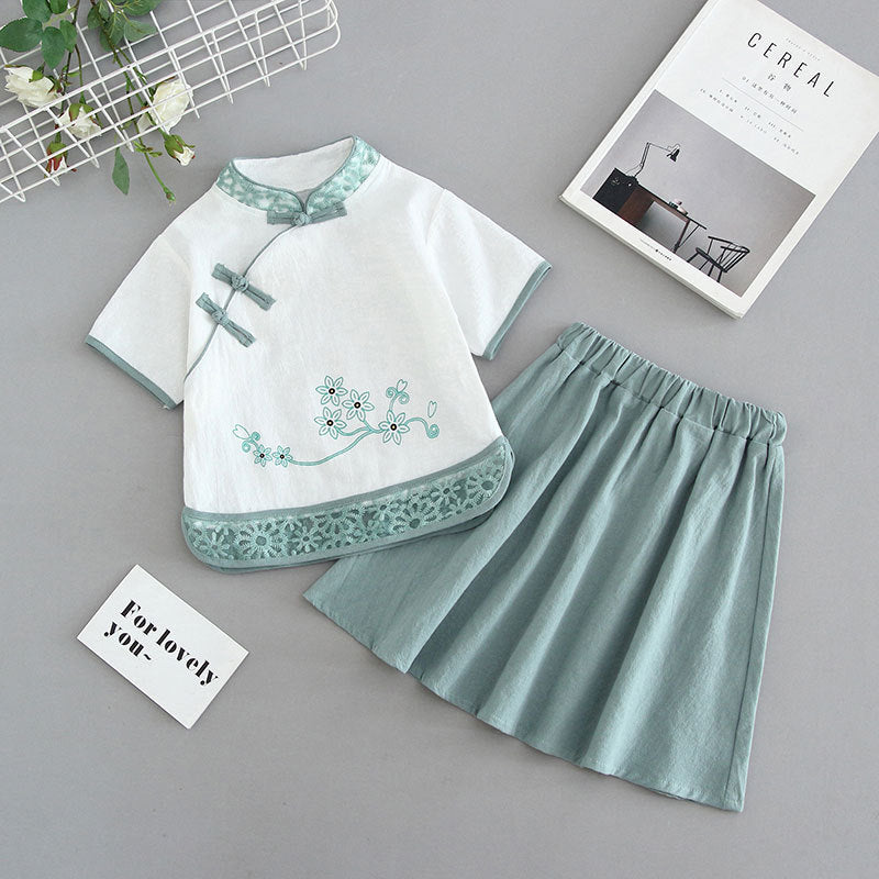 Children's cheongsam summer 2025 new girls' Tang suit cotton and linen baby Hanfu Chinese style children's dress