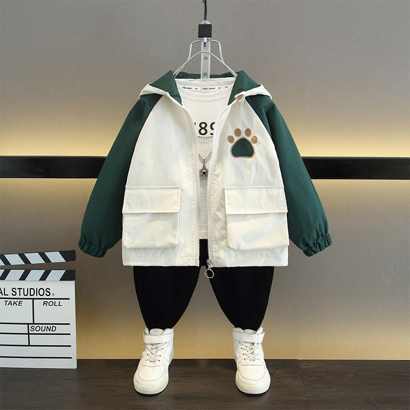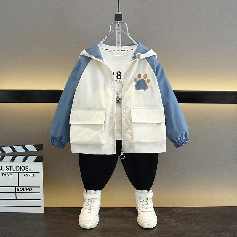 Children's clothing 2025 spring boys jacket medium children's autumn top baby Korean version hooded zipper shirt jacket spring clothing