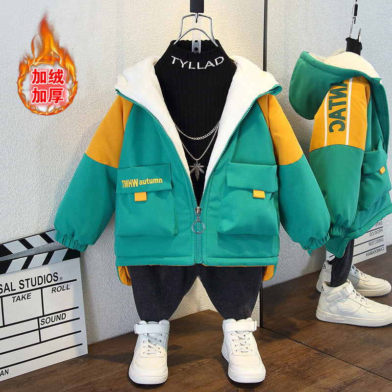 Children's clothing Boys' autumn and winter fleece thickened jacket 2025 new jacket Middle and older clothes trend