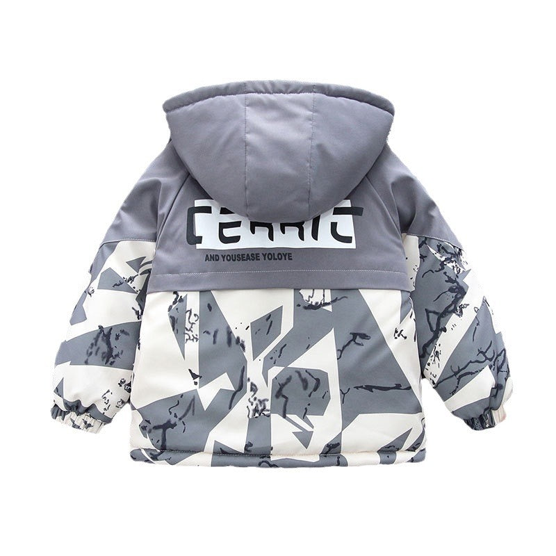 Children's clothing Boys' fleece thickened jacket 2025 new baby autumn and winter clothing handsome children's cotton-padded foreign style