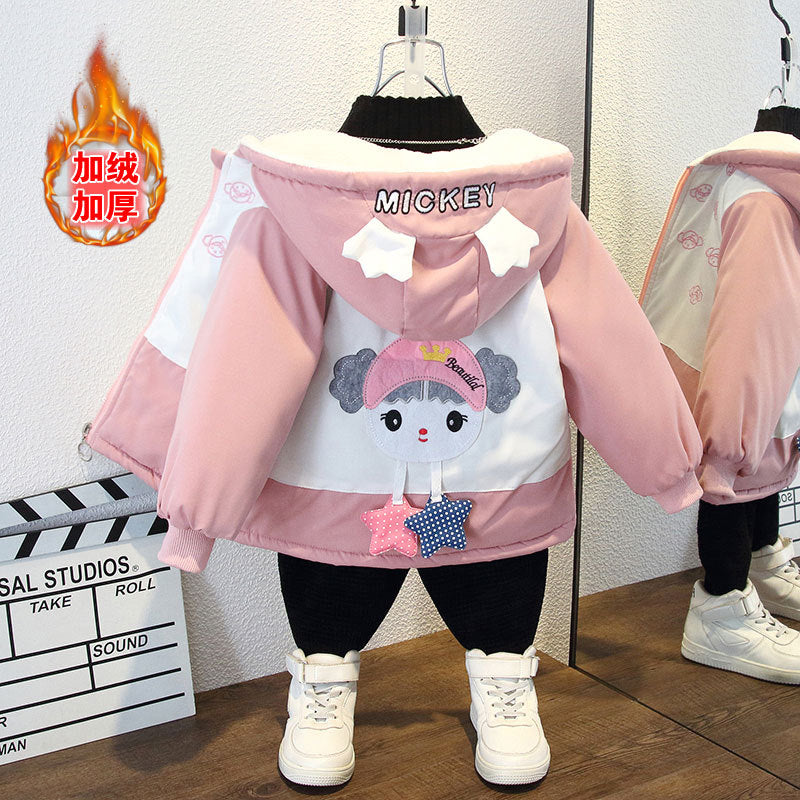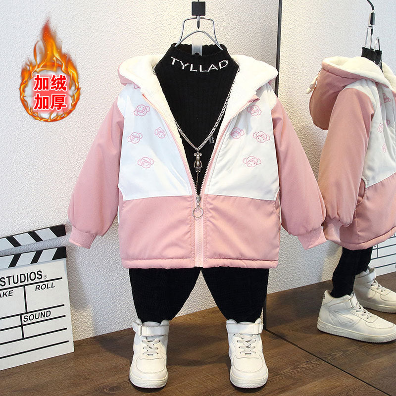 Children's clothing girls' autumn and winter clothing thickened jacket 2025 new winter medium and large children's velvet foreign-style cotton-padded clothing Korean version tide