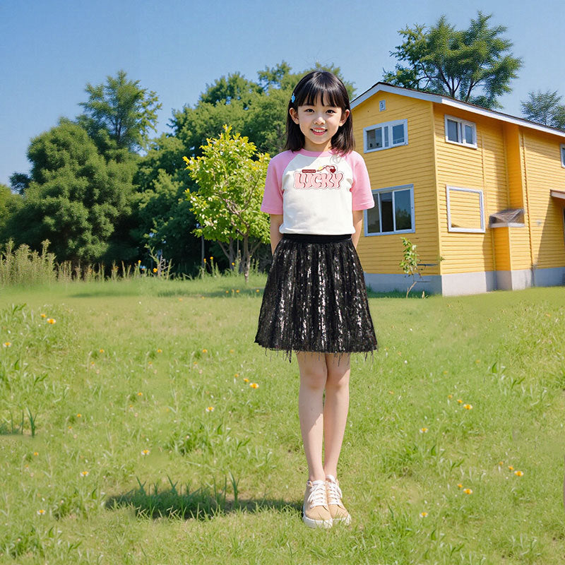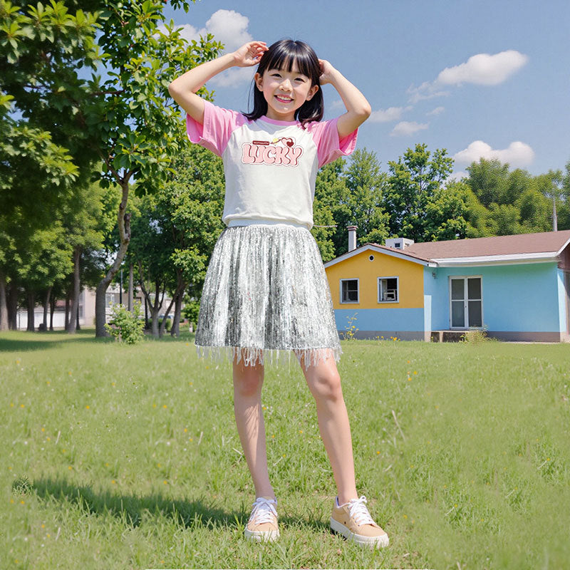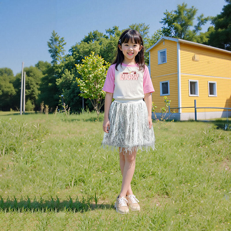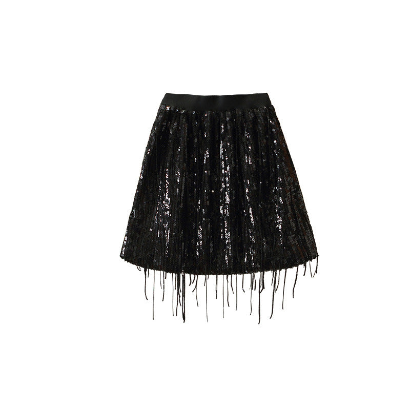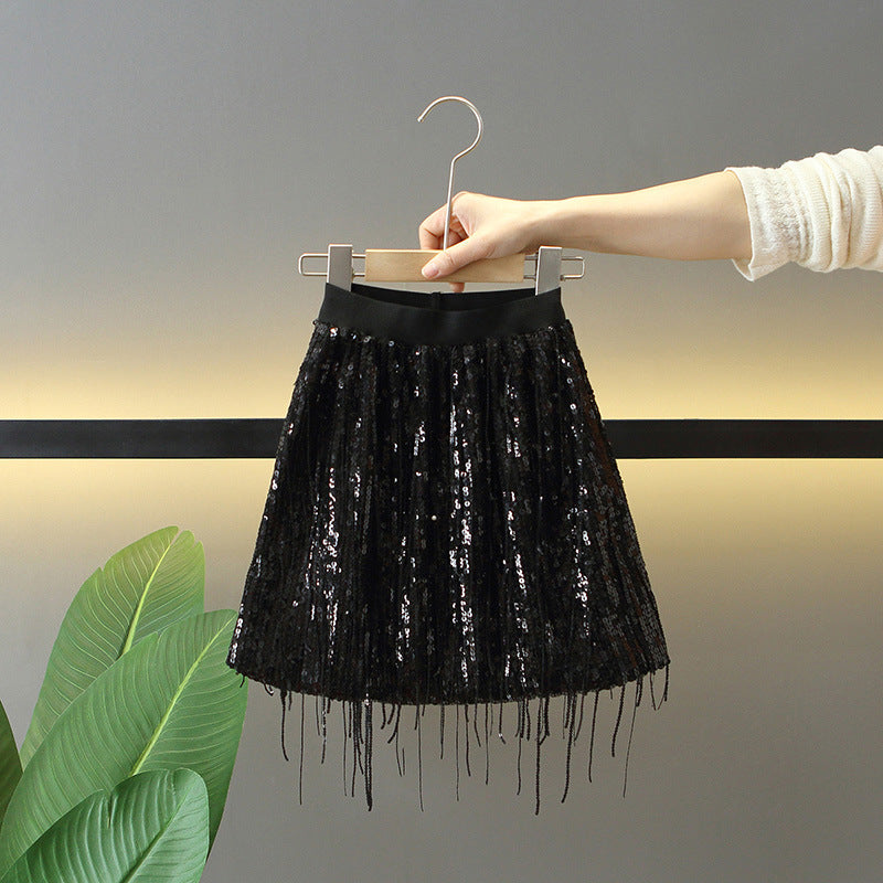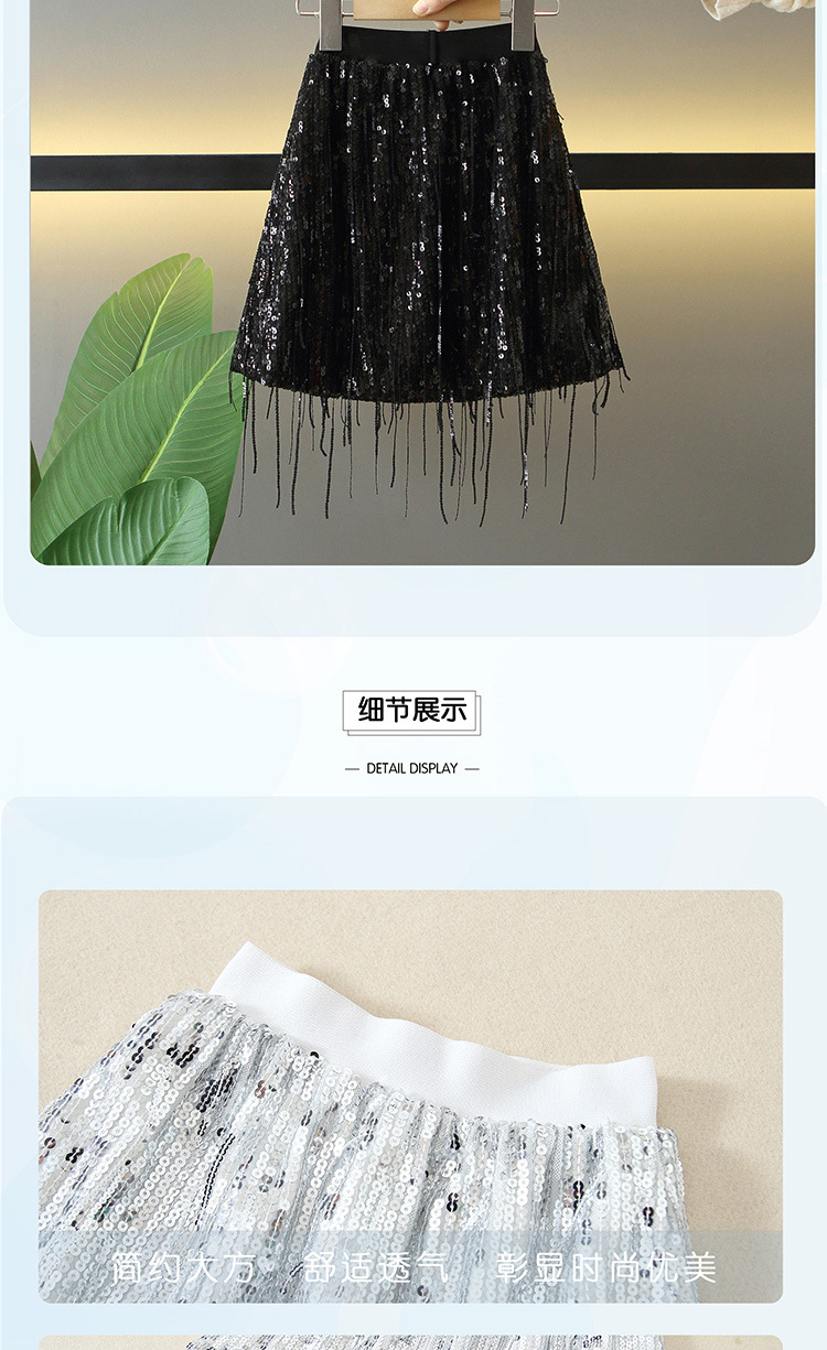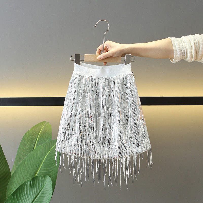 Children's clothing girls fringed sequined performance skirt 2025 new girls fringed skirt medium and older children's Latin dance skirt