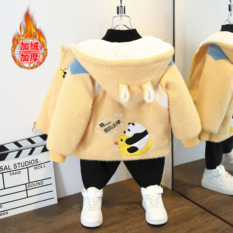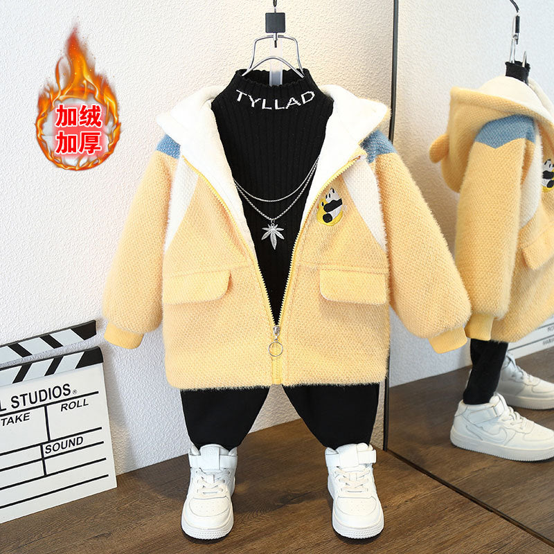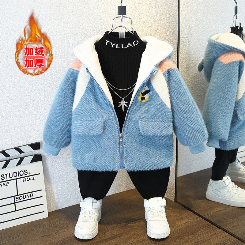Children's mink fleece jacket fleece cotton boys and girls cotton clothing medium and small children's winter clothing baby thickened top hooded