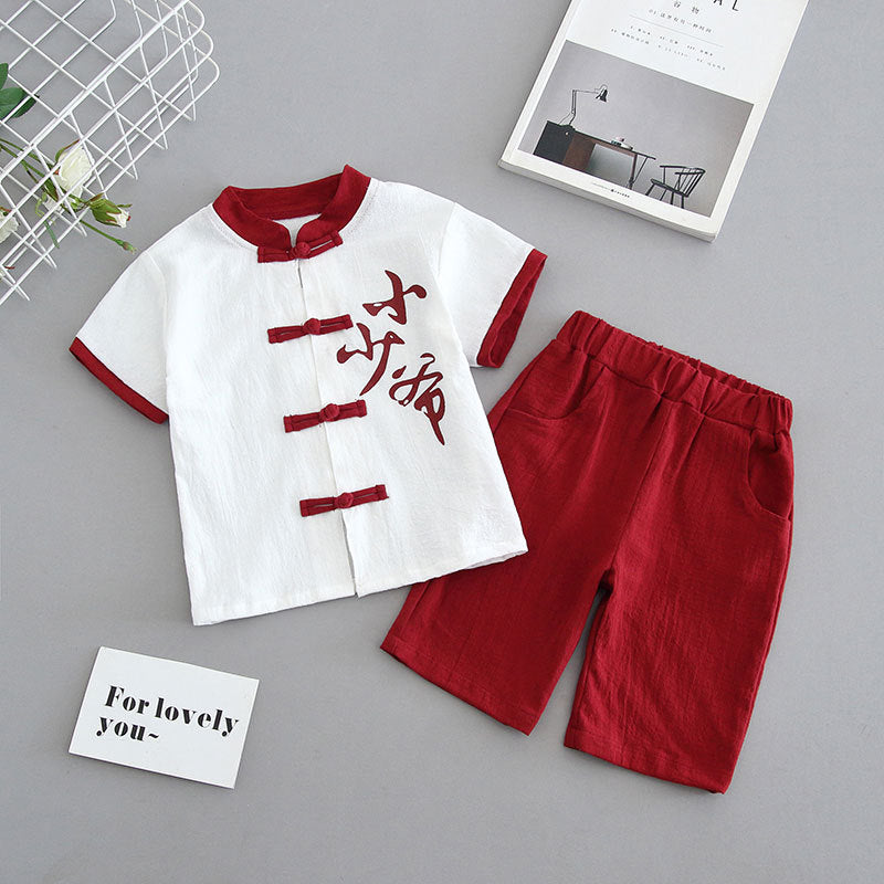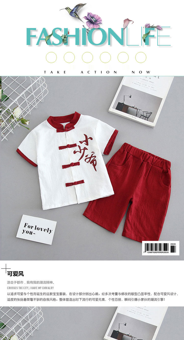 Children's short-sleeved suit boys summer baby girl 1-2-3 - 4-5 years old summer clothes 2025 new Tang fashion