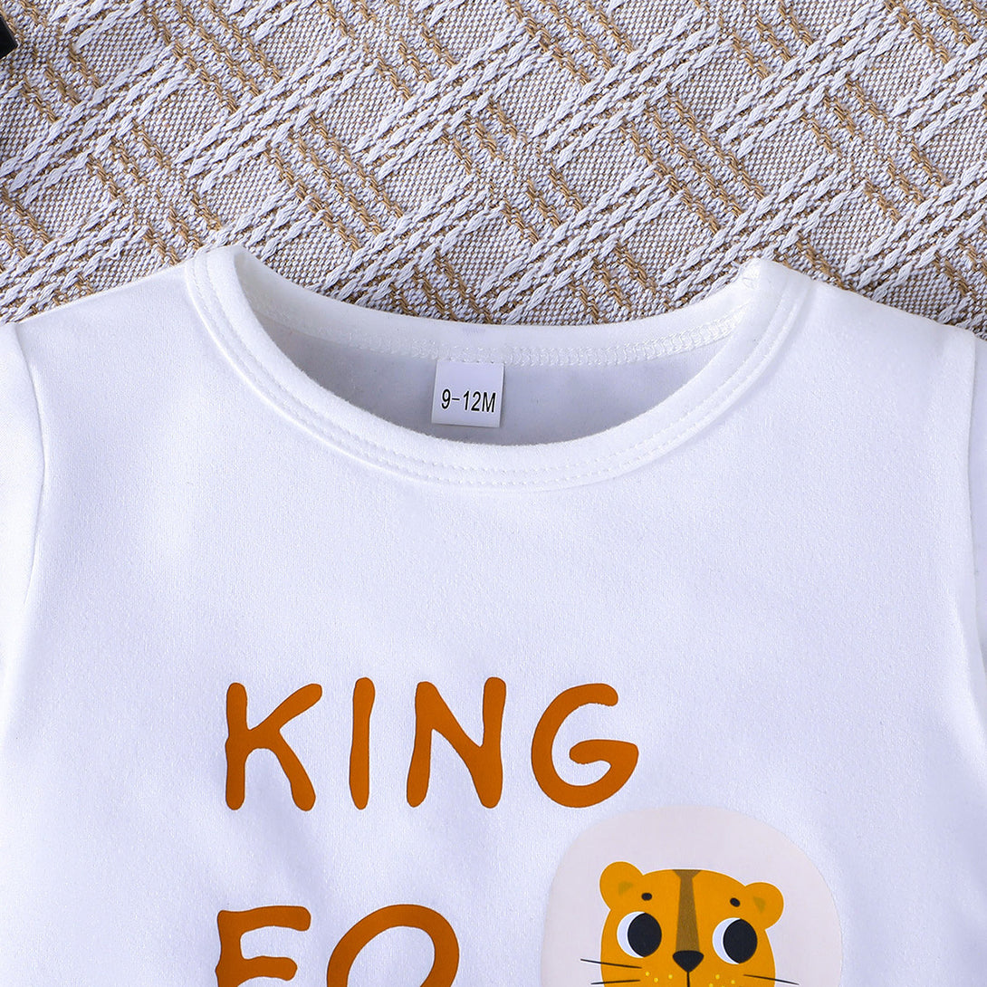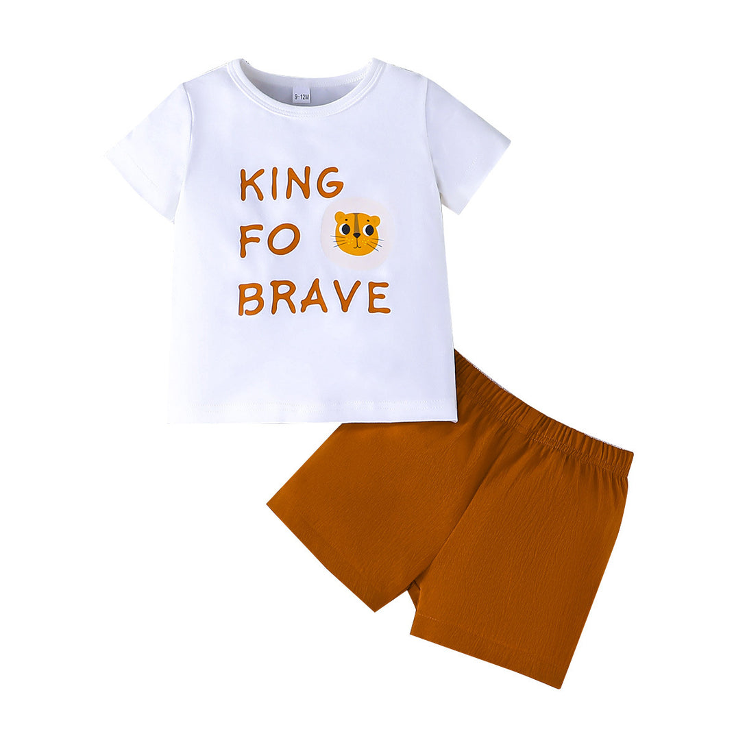 2025 summer new baby boy cute simple letter tiger print T-shirt + solid color shorts 2-piece set