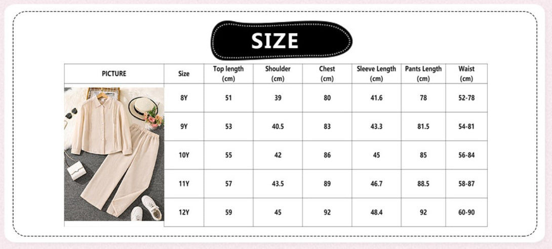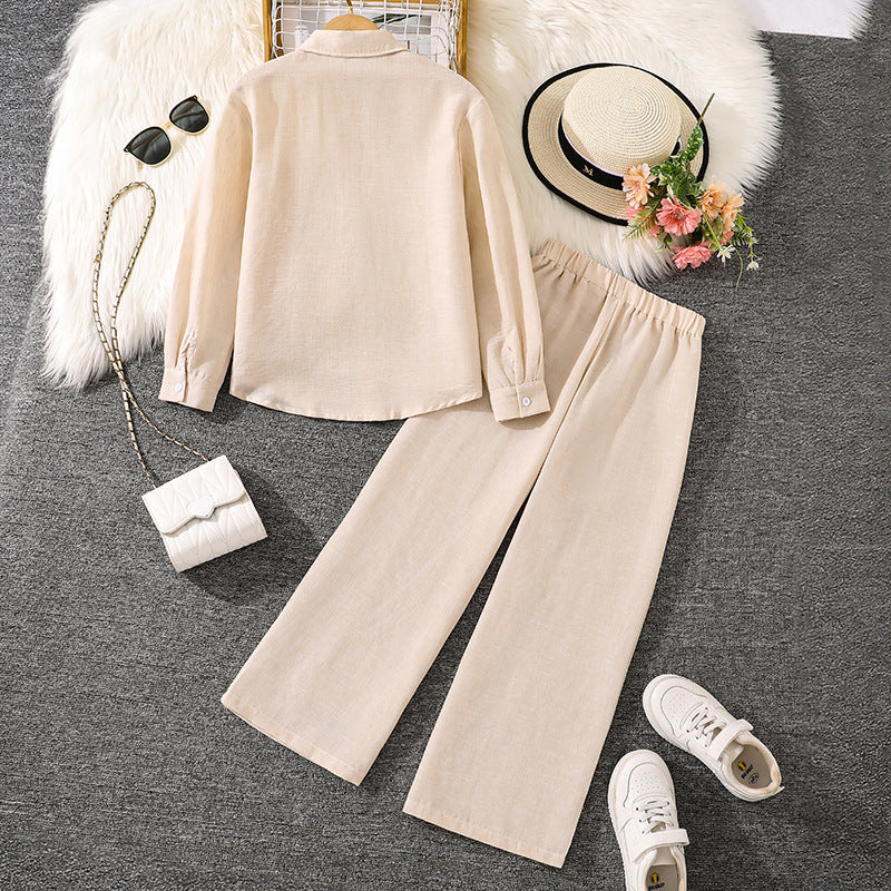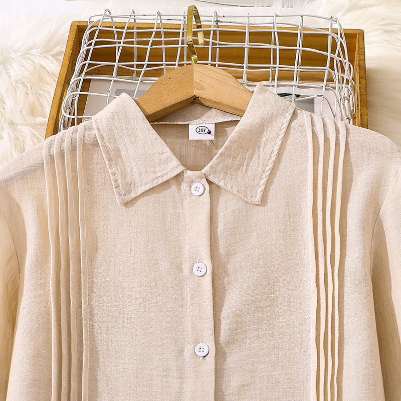 Kids’ 2-Piece Set 2025 – Lapel Pleated Long Sleeve Shirt & Wide-Leg Pants