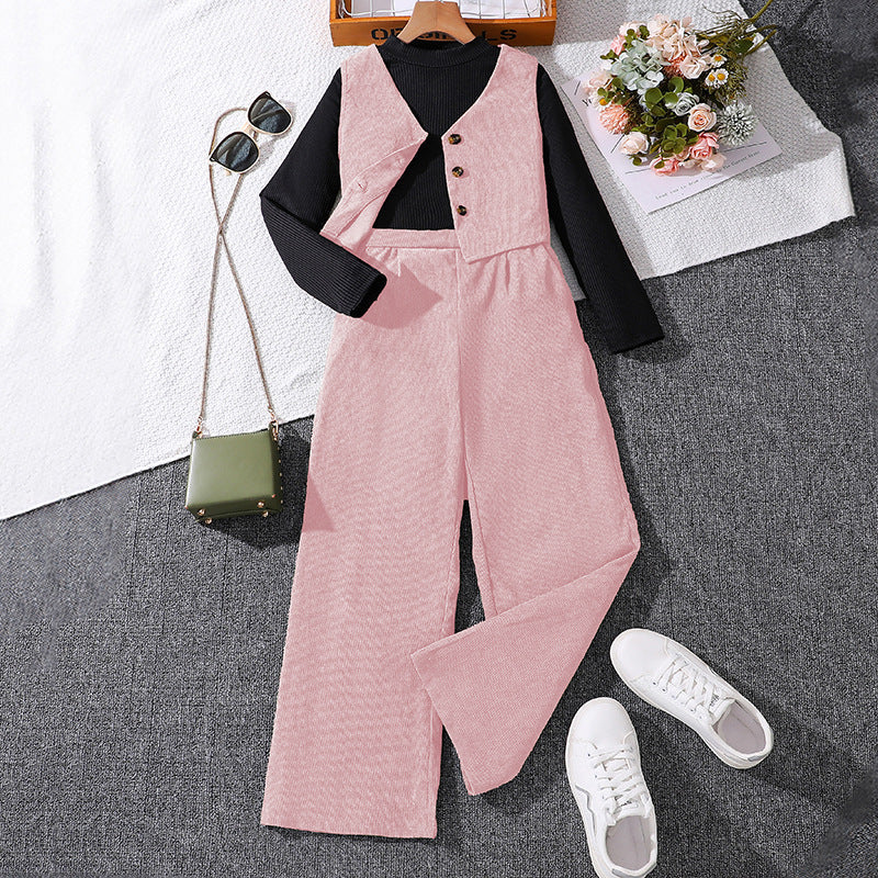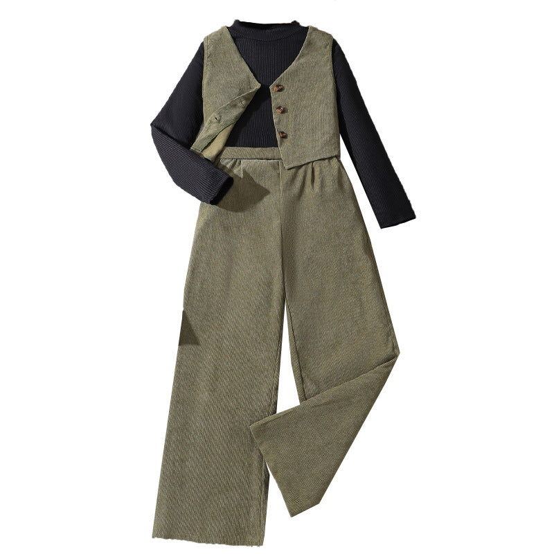 Children’s Three-Piece Outfit – Vest, Long-Sleeved Knitted Cardigan Sweater & Trousers