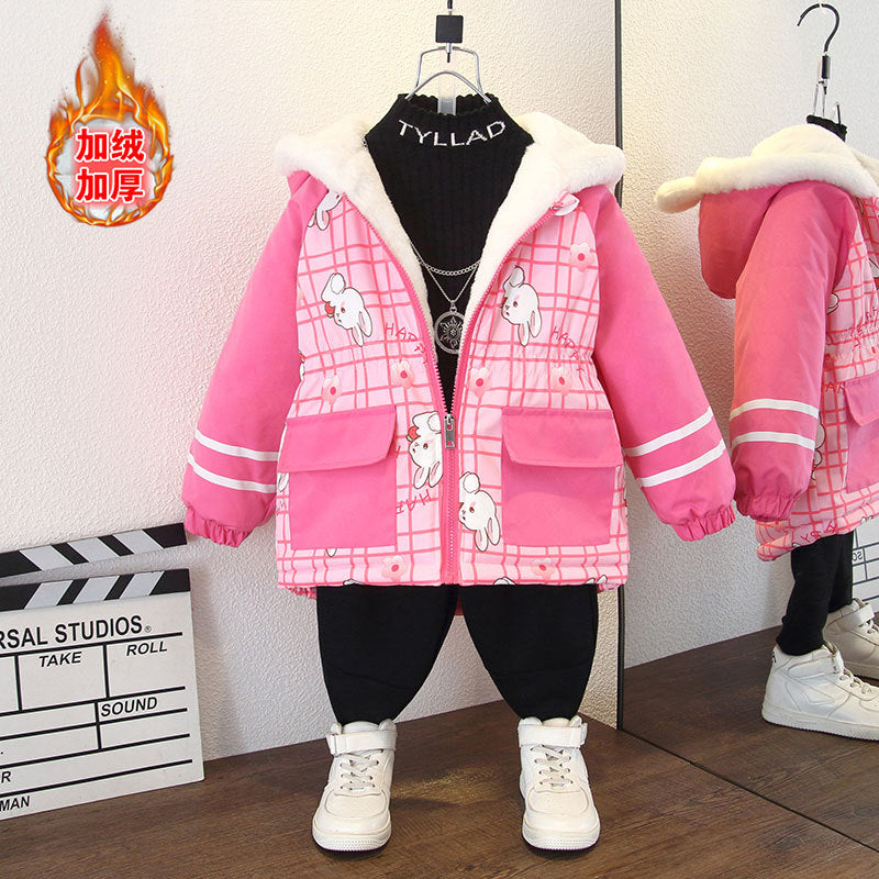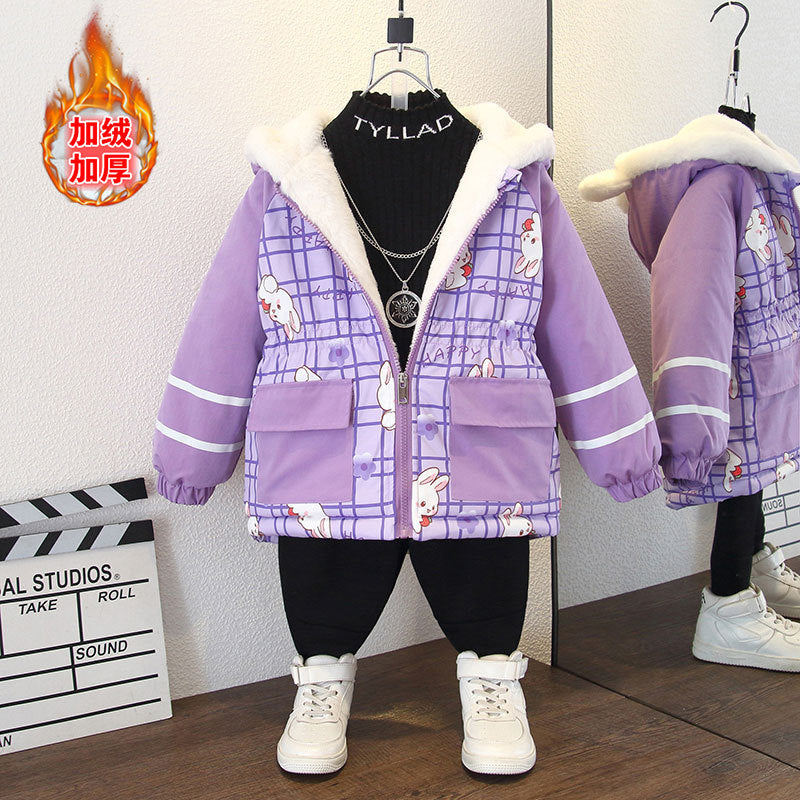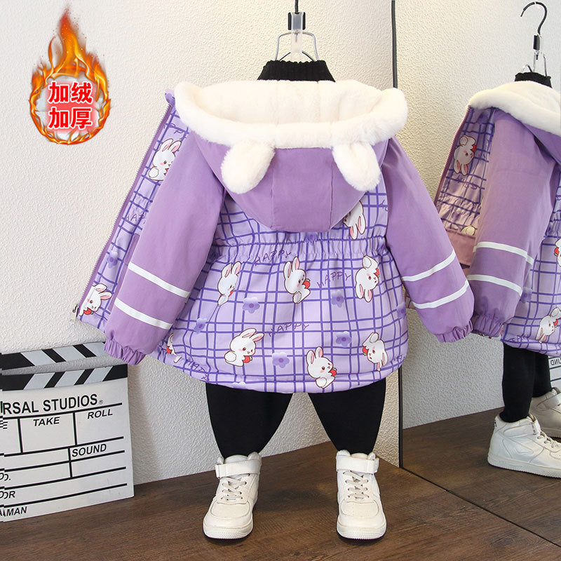 Girls' autumn and winter fleece jacket 2025 children's new warm baby girl thickened plaid jacket top