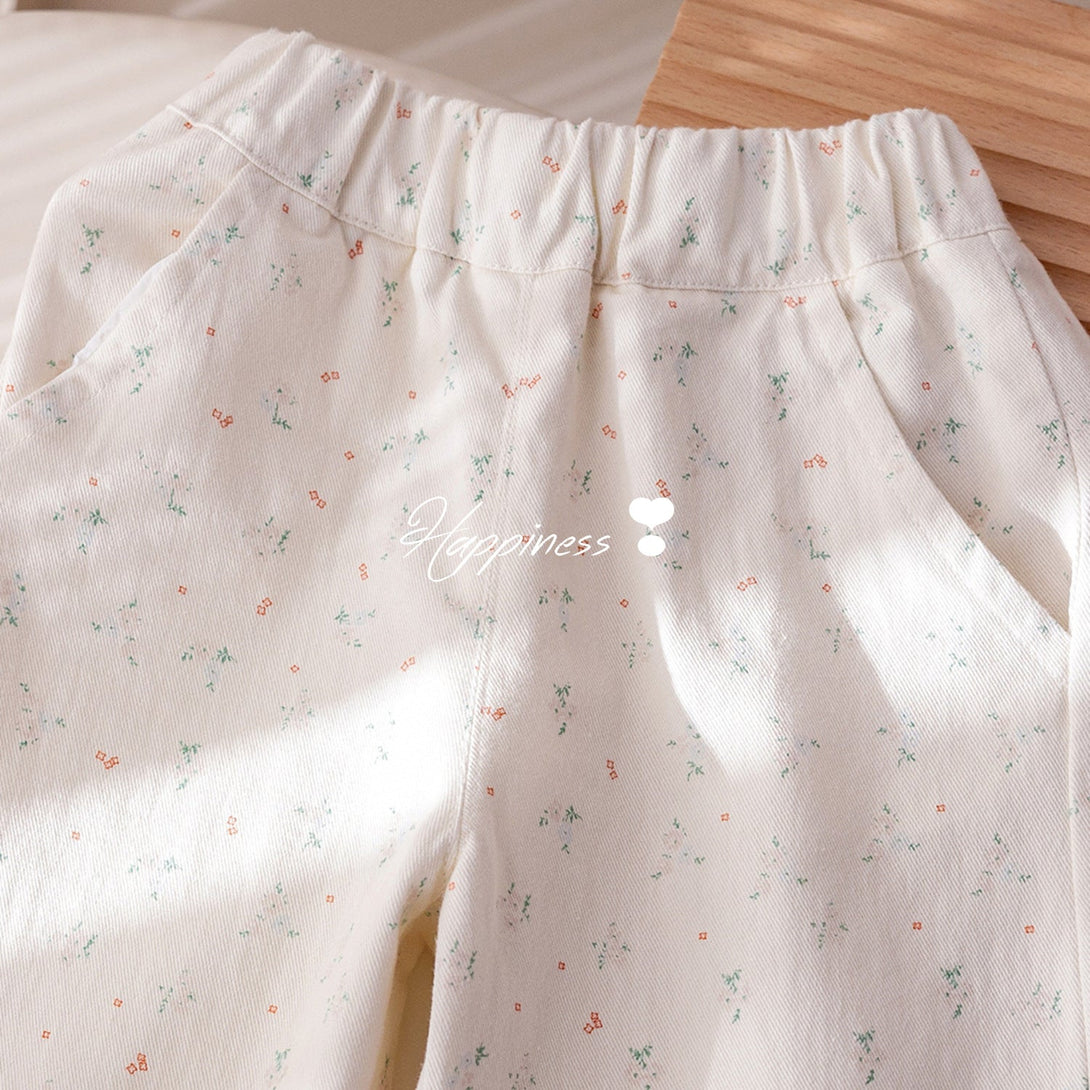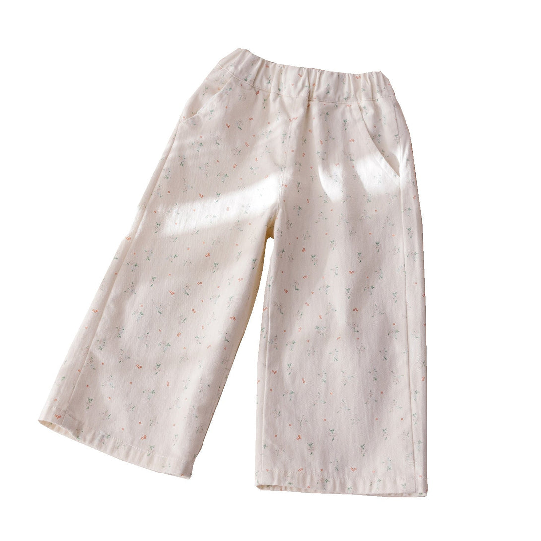 Girls’ Korean-Style Floral Wide-Leg Pants – Simple Fresh Casual Trousers