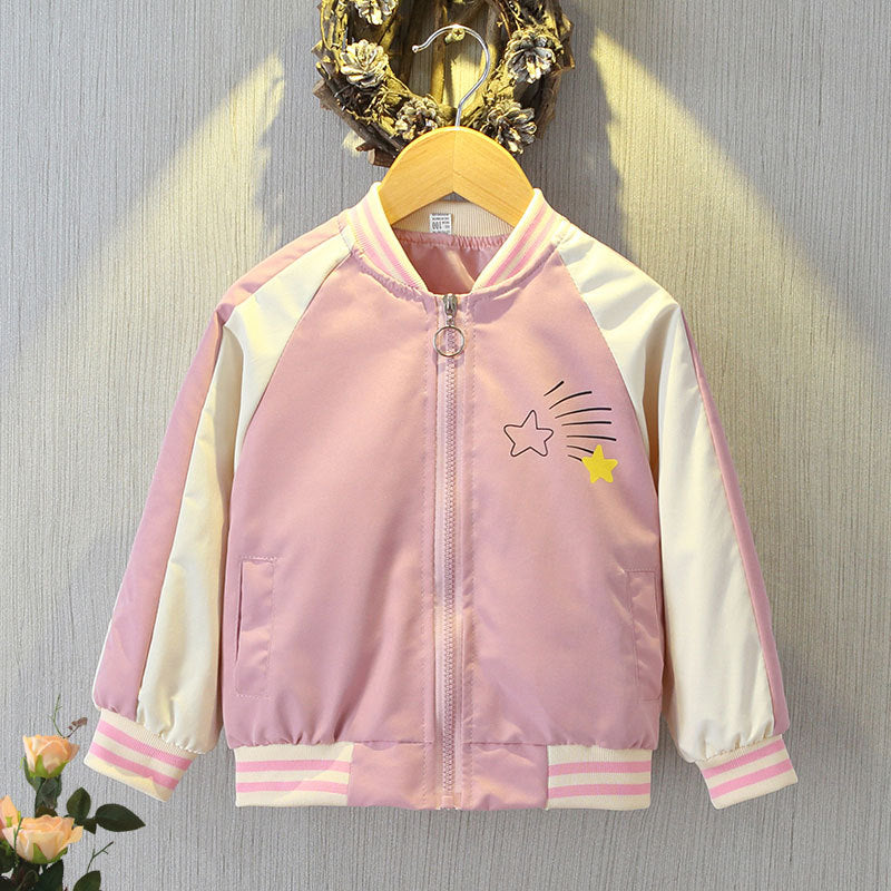 2025 Girls’ Cartoon Baseball Jacket – for 2–12 Year