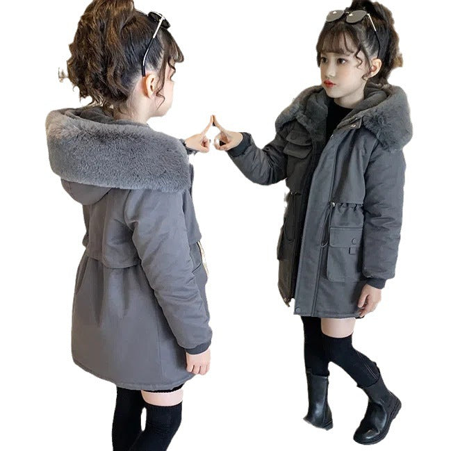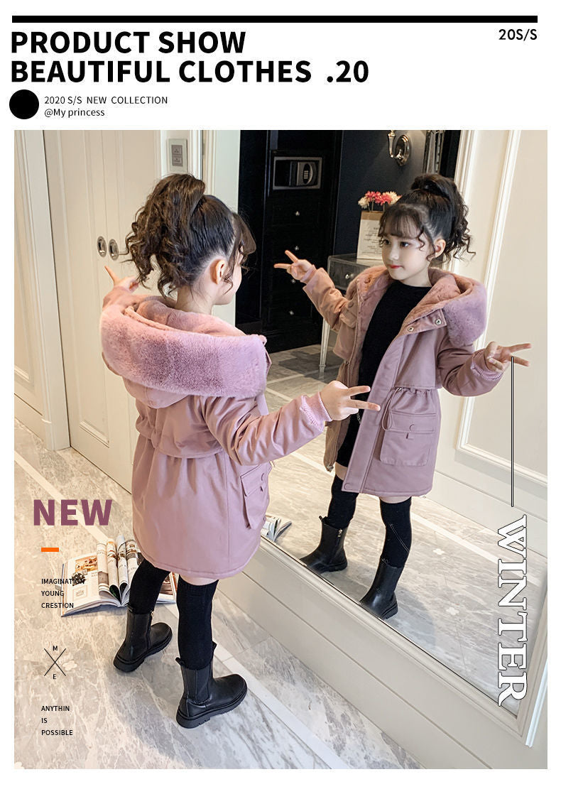 2025 New Girls’ Winter Velvet Cotton Coat – Thick Warm Foreign-Style Jacket