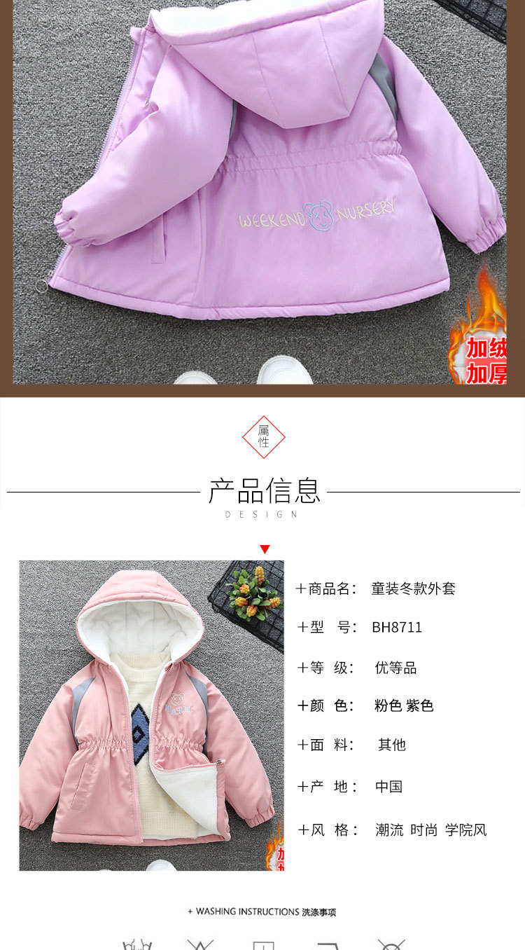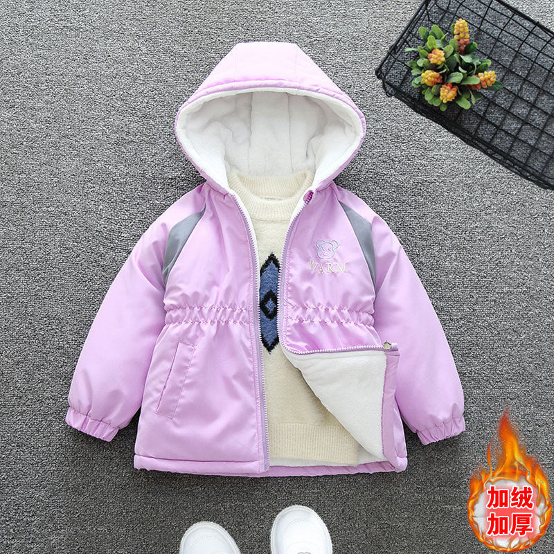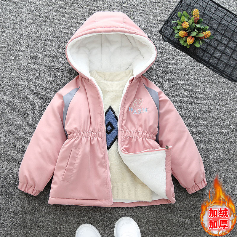 Girls hooded pie overcomes cotton jacket 2025 new autumn and winter baby winter clothes boys velvet cotton coat