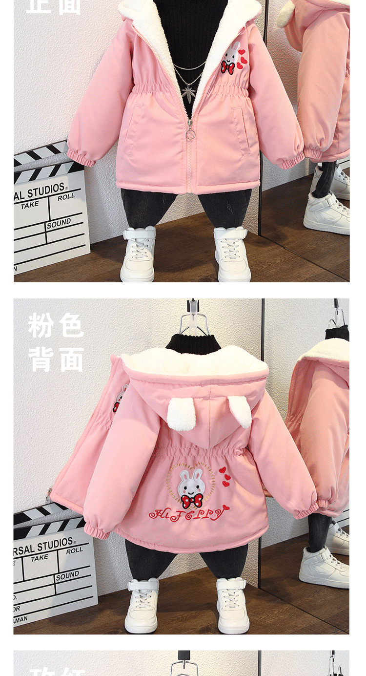 Love Rabbit Fleece Windbreaker Pink, Love Rabbit Fleece Trench Coat Rose Red |