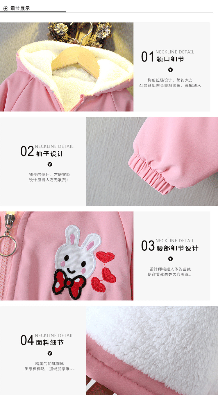 Color: Love Rabbit Fleece Windbreaker Pink, Love Rabbit Fleece Windbreaker Rose Red