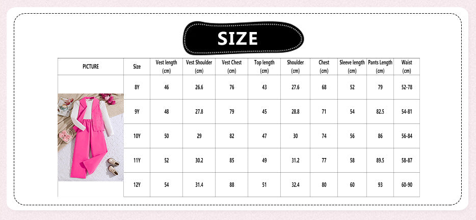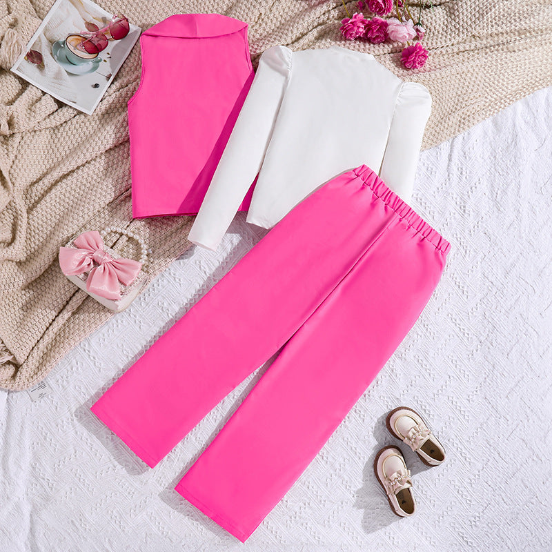 Girls’ Three-Piece Suit – Style Vest, Long-Sleeved Top, and Trousers