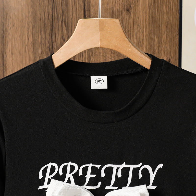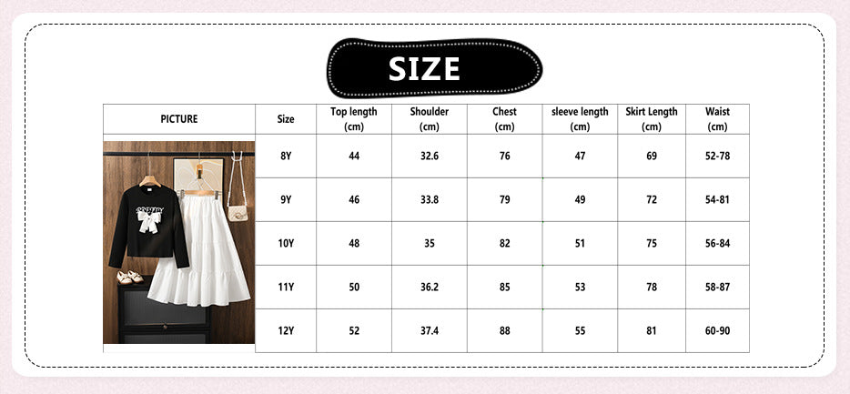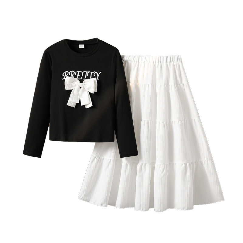 Girls’ Sweater Set – Sweet 3D Bow Long-Sleeved Top with Skirt FD