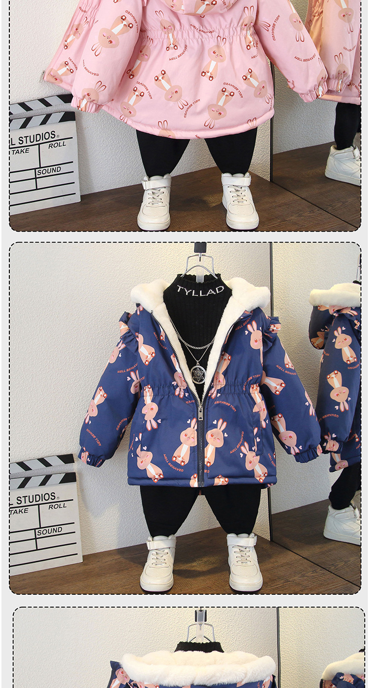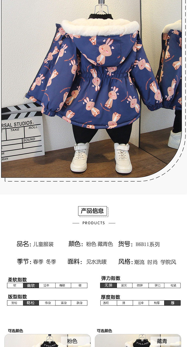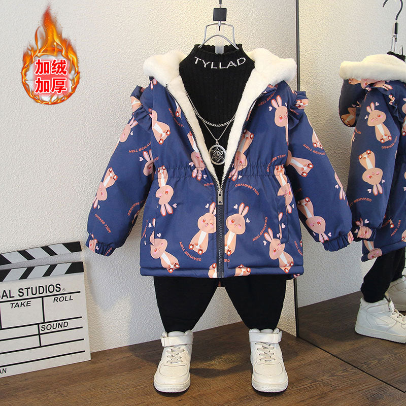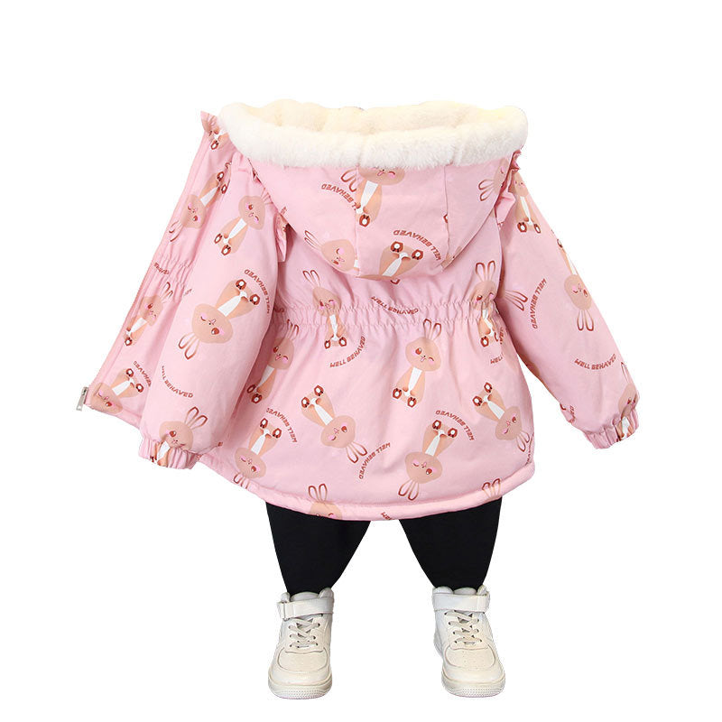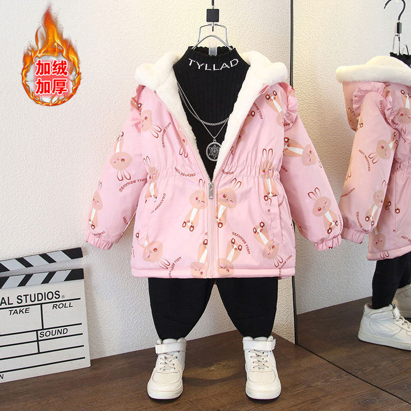Girls' winter cotton-padded clothes 2024 winter clothes, baby girls' foreign-style velvet warm jacket, medium and small children's new waist cotton clothes