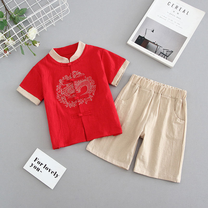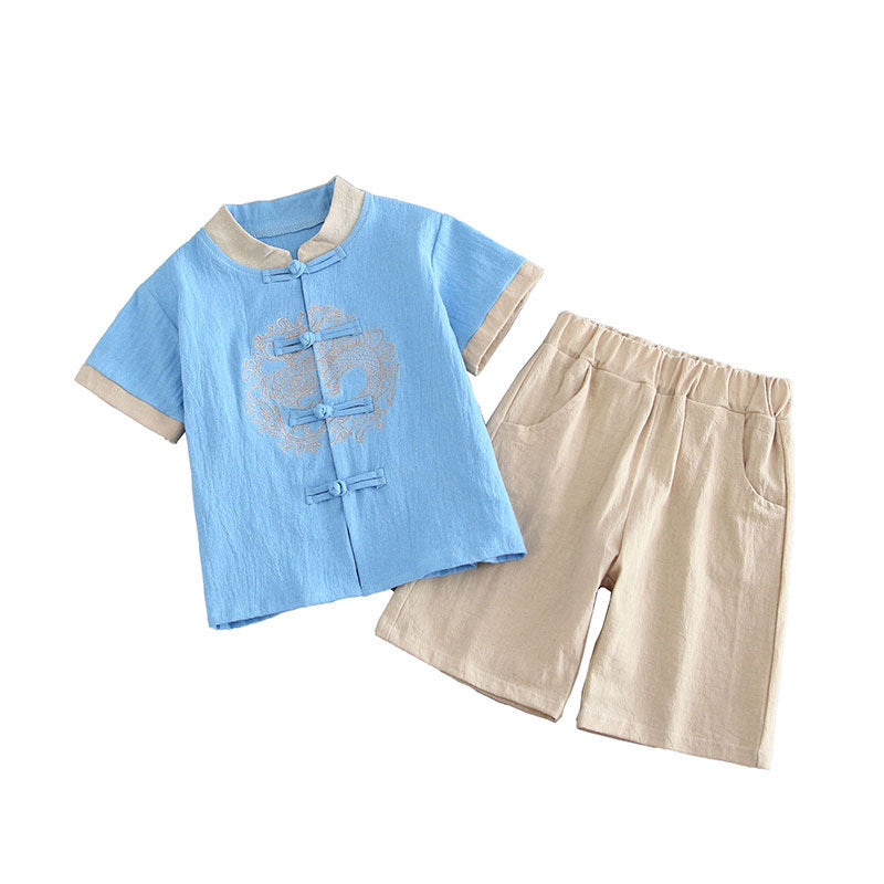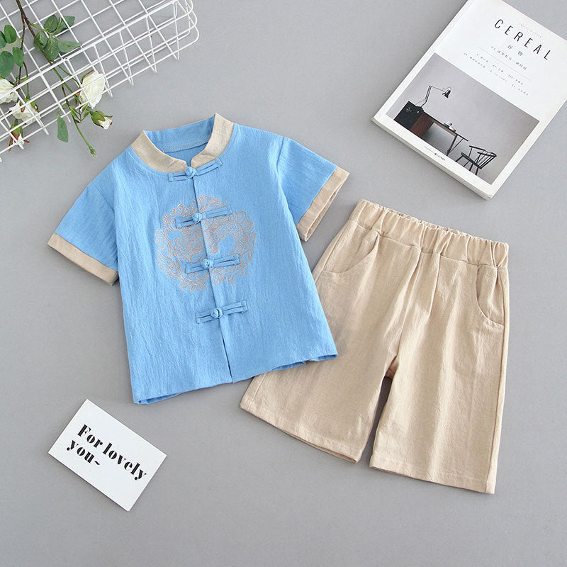 Hanfu boys summer cotton and linen suit thin Chinese style children's ancient clothing baby Tang clothing girls Sinology performance clothing