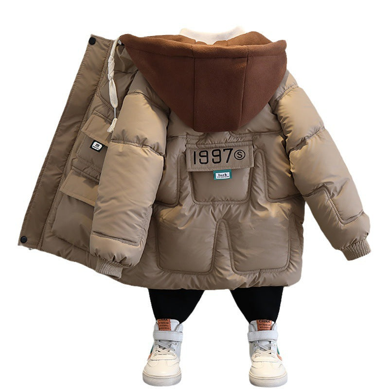 Boys’ Winter Down Cotton Coat with Lamb Fleece Lining – Thick Warm Foreign Trade Jacket