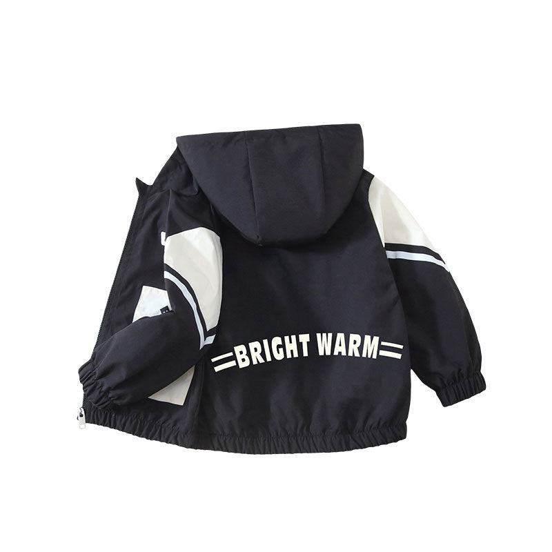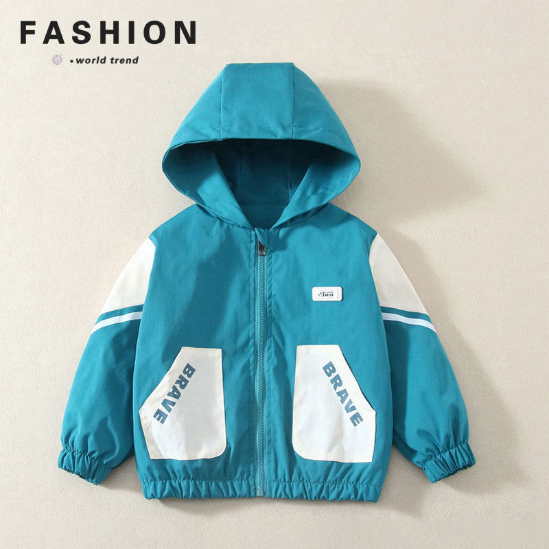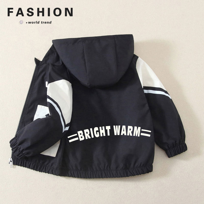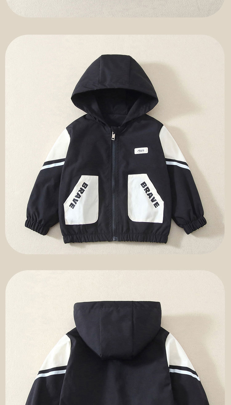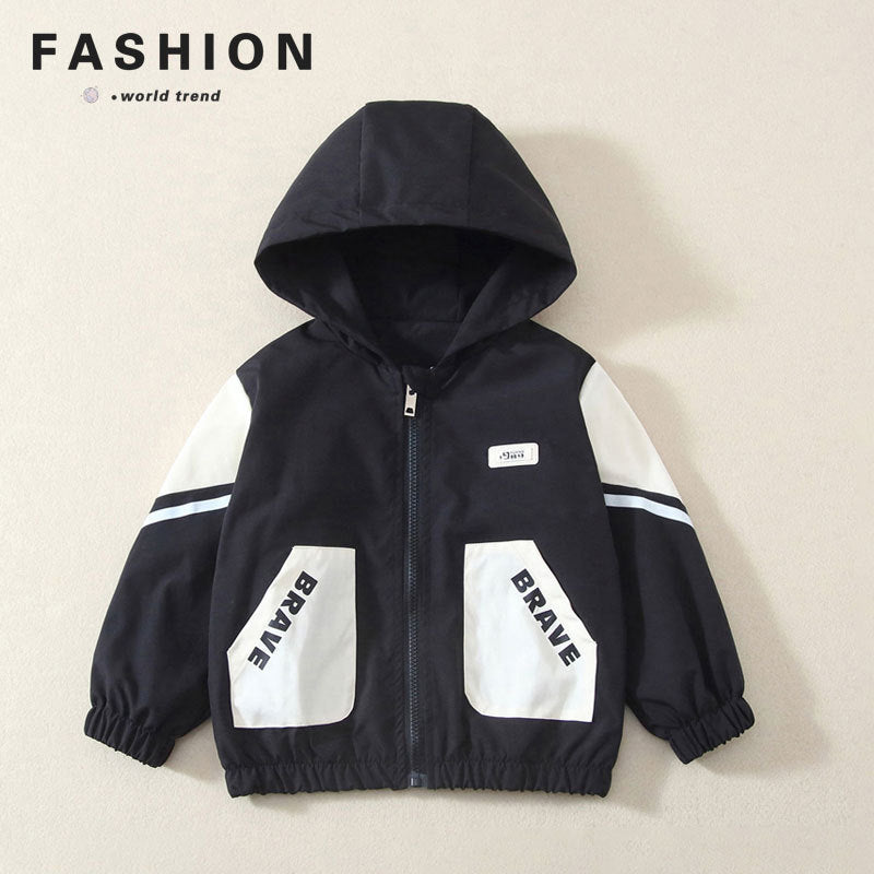 Mid-sized and older boys and babies spring new Korean version hooded jacket girls fashion color matching letter printing jacket fashion