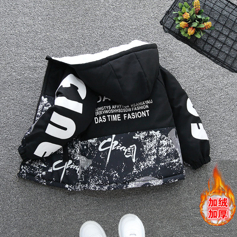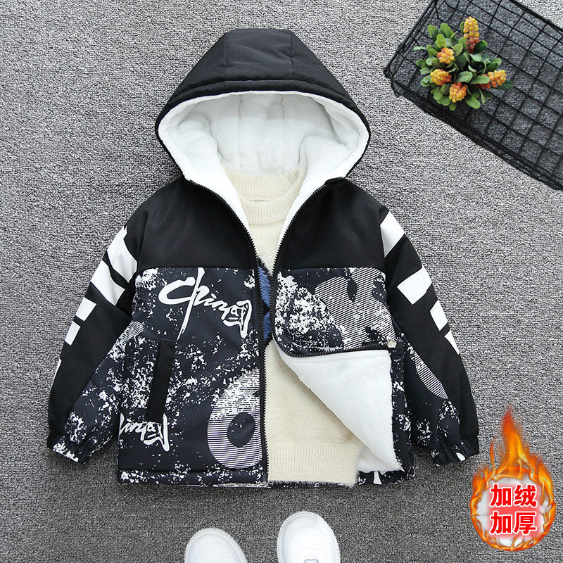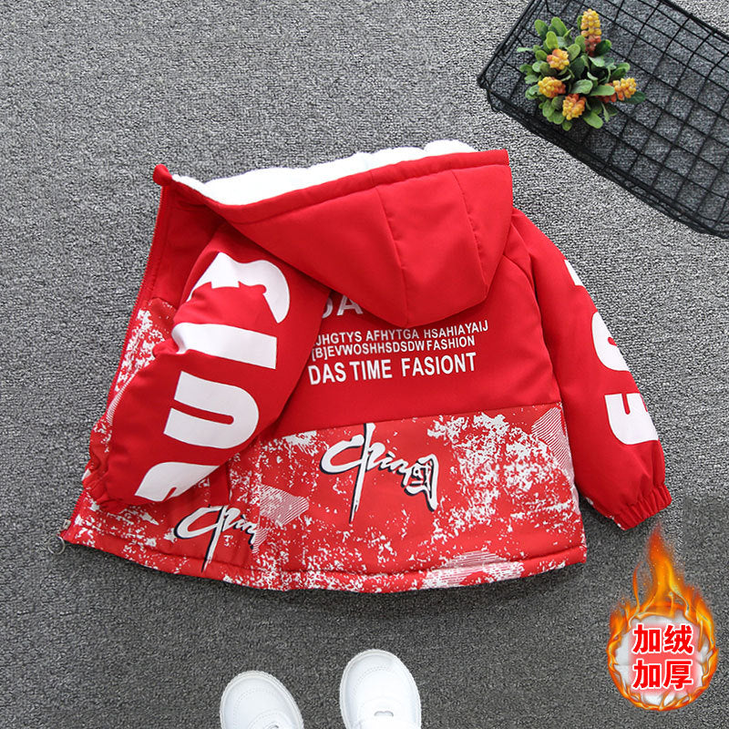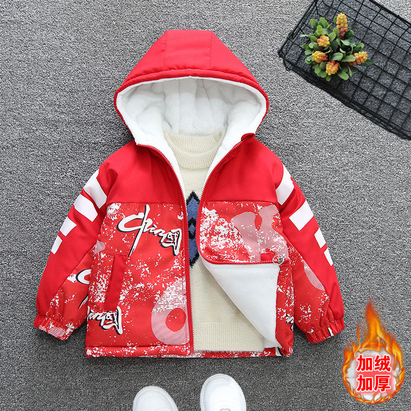 Pie Overcomes Boys' Jacket Autumn and Winter 2025 Baby Winter Clothing Fleece Thickened Cotton Clothing Girls' Cotton Clothing