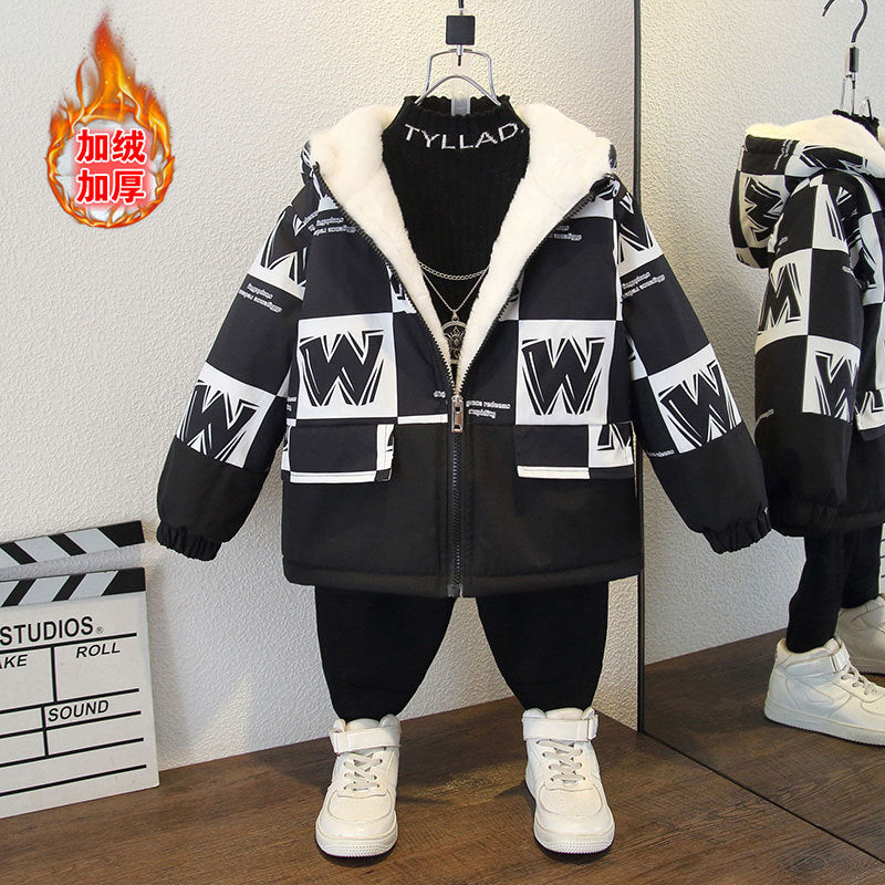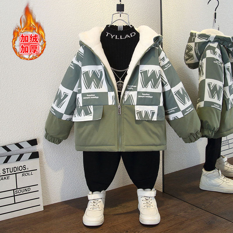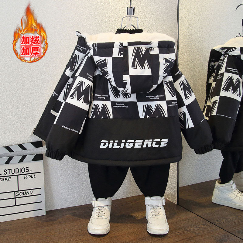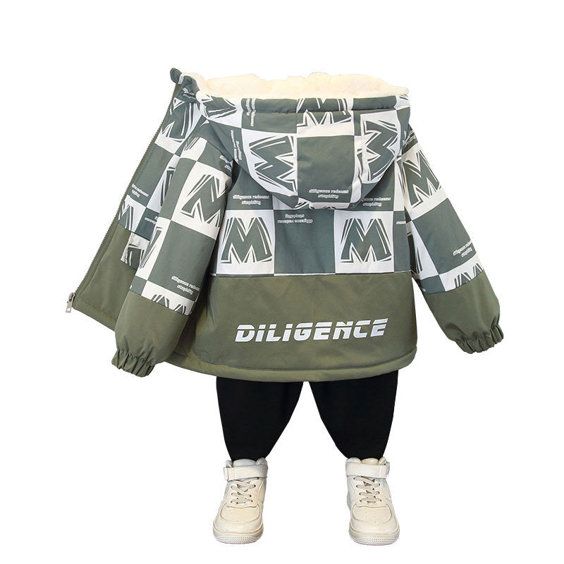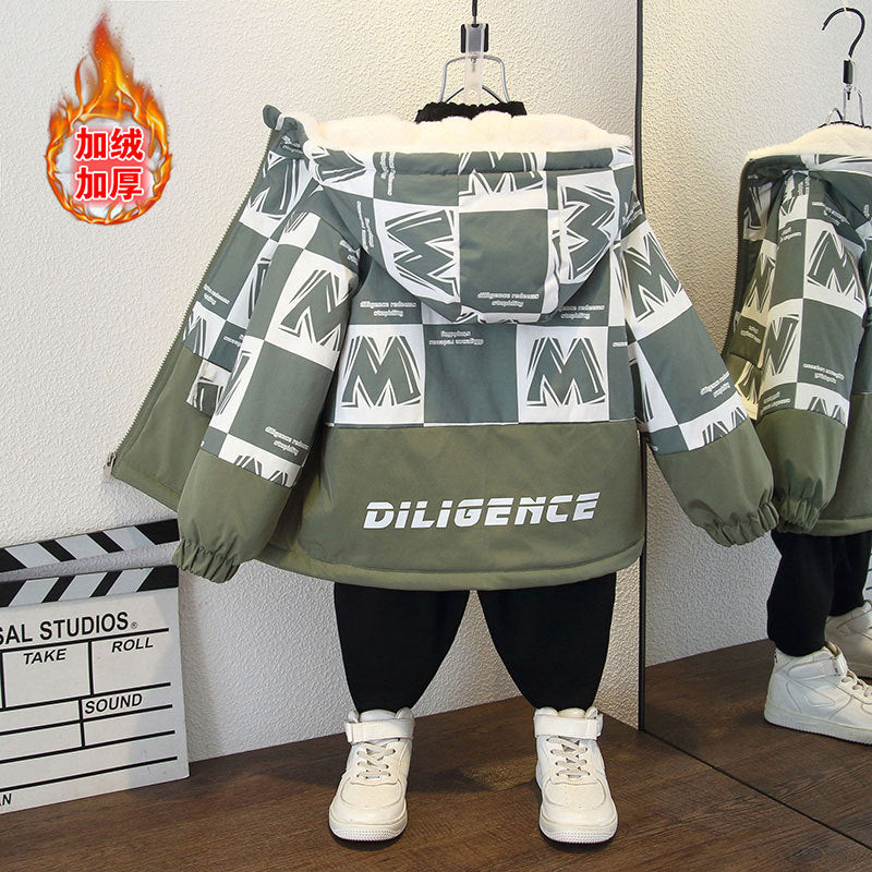 Boys' new winter jacket fleece warm hooded thickened