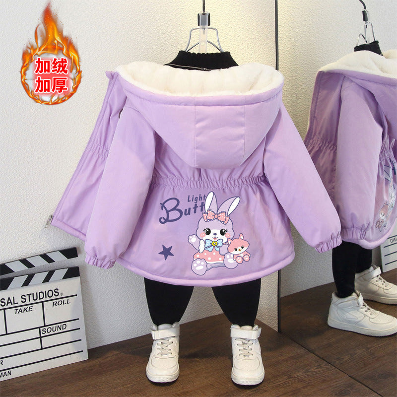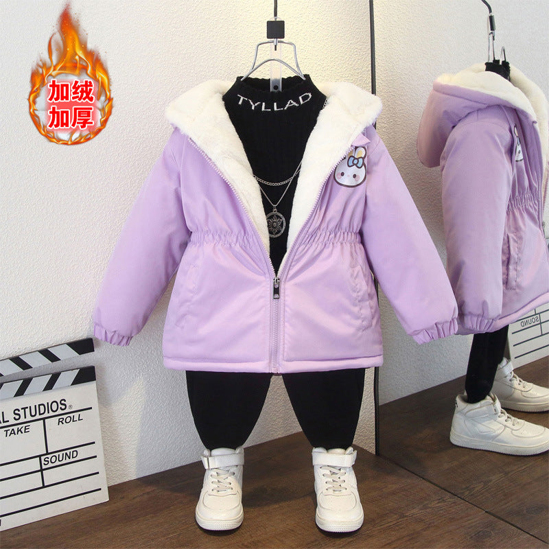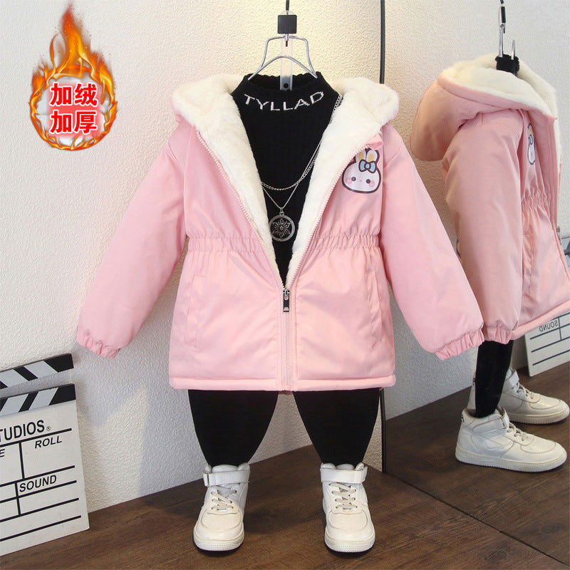 Processing custom girls' winter clothing fashion waist cotton clothing 2025 girls' winter velvet thickened fashionable jacket top