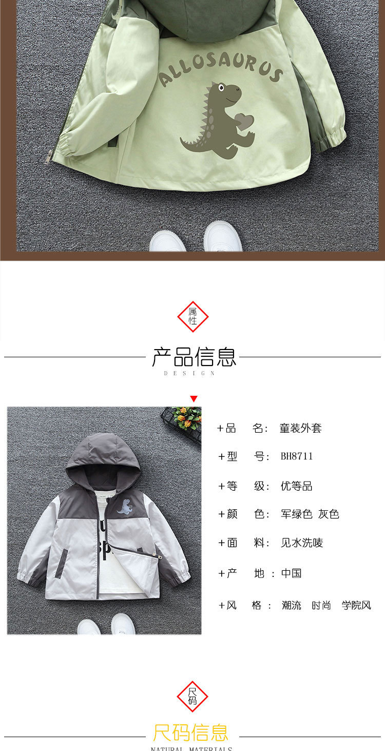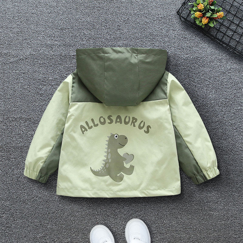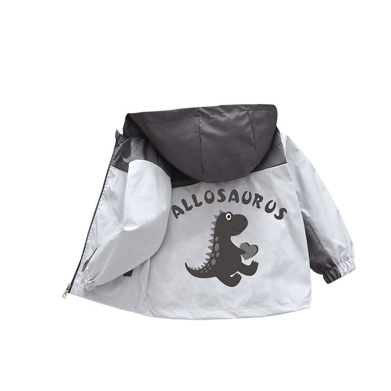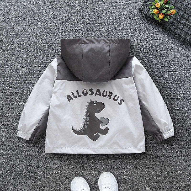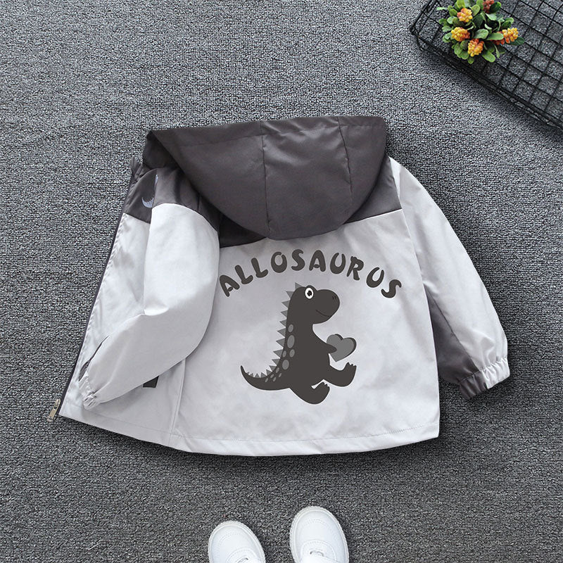 Teen boys spring new Korean version of fashion cartoon tiptoe dragon print hooded jacket girls casual jacket